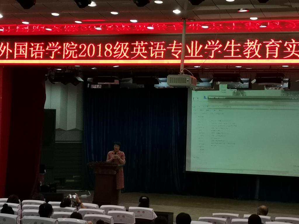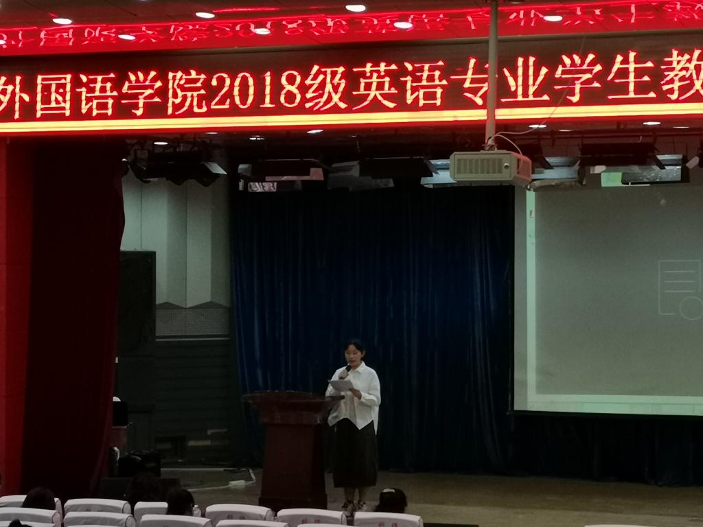 大会第一项通过视频播放的形式,让全体师生共同回顾了英语18级学生实习过程中让人难忘的美好瞬间,引发了同学们对实习期间点点滴滴的回忆,有欢笑、有泪水、有难过、有兴奋……。