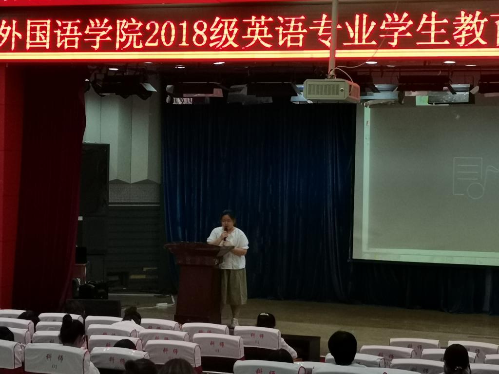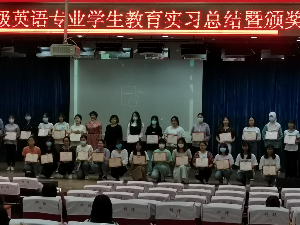 Beat365唯一官方网站英语2018级学生教育实习总结暨颁奖大会于2021年9月16日在河北科技师范学院开发区校区报告厅顺利举行,参加大会的学生包括英语2018级全体学生共122人,2021级新生代表共40人,同时,Beat365唯一官方网站邵丽君书记、崔海英院长、罗学锋副院长和范学荣副院长,以及部分实习指导教师出席了大会。
