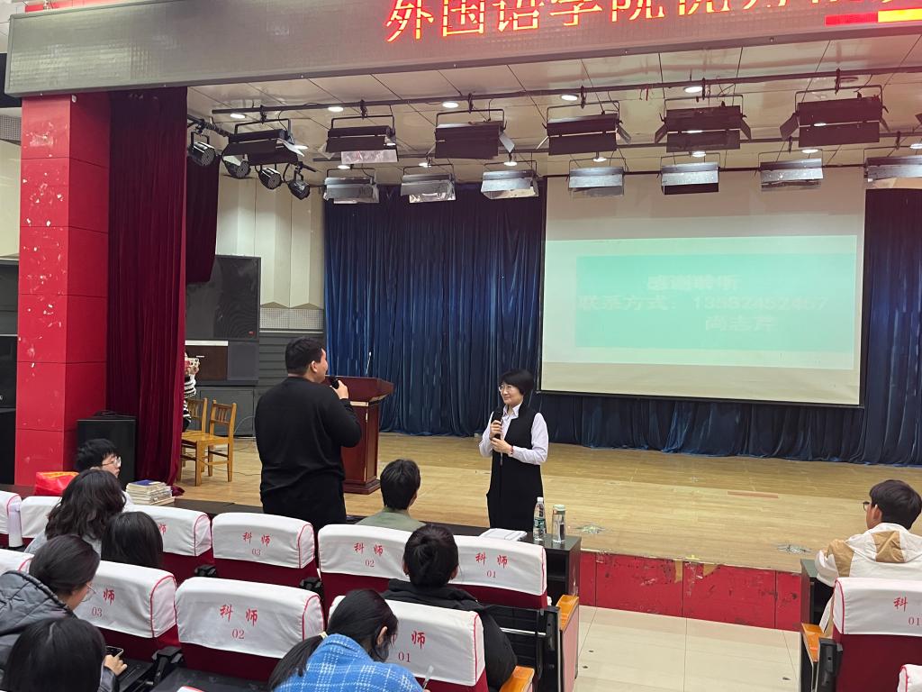 “雏既壮而能飞兮,乃衔食而反哺”。为进一步提升学生专业能力和综合素养,秉承“外语+”应用型人才培养理念,充分体现外语的“学以致用”原则,提升学生用外语“讲好中国故事”的意识和能力,增强文化自信,Beat365唯一官方网站于11月8日邀请优秀校友尚志芹(河北建材职业技术学院副教授、对外汉语教学国际汉语高级教师、国家高级英文导游员、河北省英语导游考官、河北省“师德标兵”、全国第十三批援藏导游员西藏自治区“先进个人”)在开发区校区综合楼二楼报告厅进行针对教师资格证和外语导游考试的讲座。