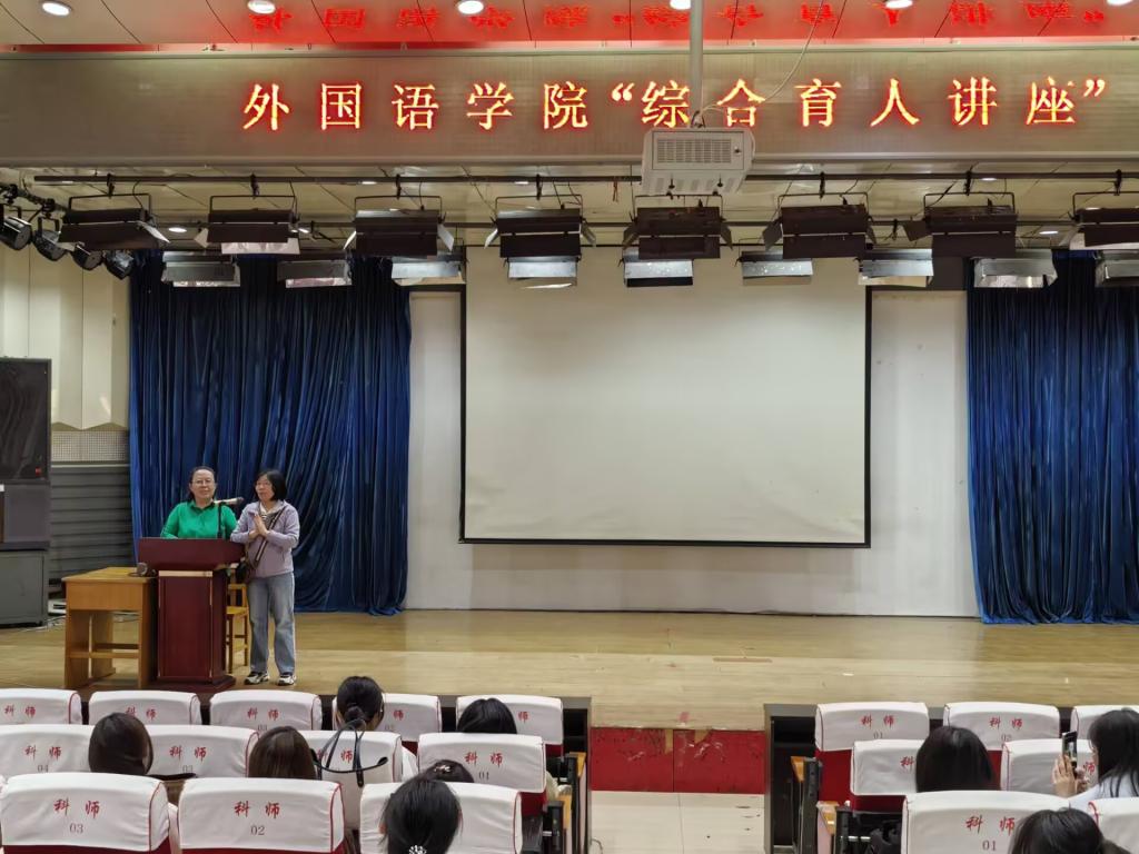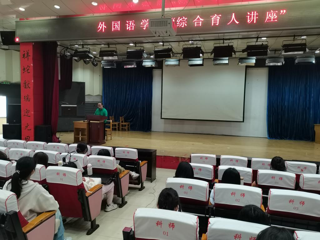 2025年4月29日下午,Beat365唯一官方网站在开发区综合楼学术报告厅召开了综合育人的专题讲座,此次讲座是Beat3652025年“名师大讲堂”系列讲座之一。特邀主讲人为秦皇岛市海港区名师工作室主持人齐春霞老师,齐老师是河北省骨干教师,秦皇岛市优秀骨干教师,秦皇岛市中小学青年教师教学竞赛评委库专家。英语专业2023级和2024级全体学生及部分英语专业教师在会场认真聆听了本次讲座。