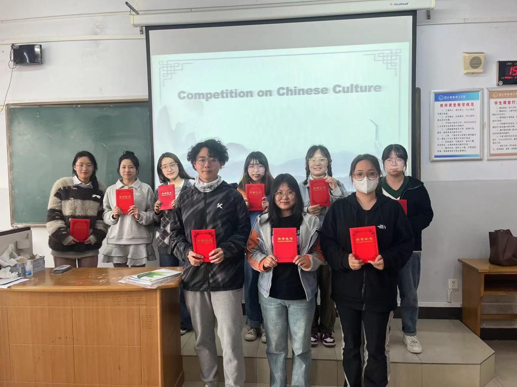 比赛过程中,同学们都认真思考,现场气氛异常活跃。抢答题和风险题环节更激发了同学们的热情,充分调动了大家对中国文化进行深入学习的兴趣。经过评比,英语2101班李欣楠等人获得一等奖,英语2102班王雨萌等获得二等奖,英语2102班贺青等获得三等奖,英语2103班王乐等及英语2104班周千颂等获得优秀奖。