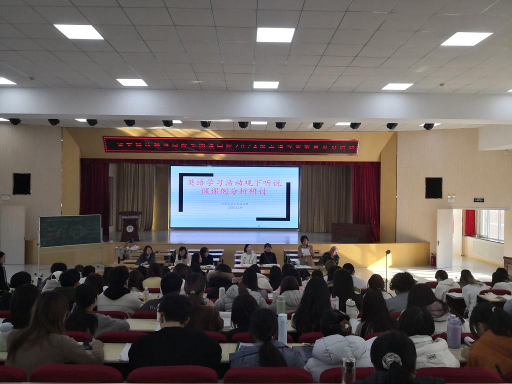 课后,崇德实验学校英语组全体教师围绕“英语学习活动观下听说课课例分析开展研讨活动。王振健副校长在点评中肯定了邹老师的课程 “教学设计科学合理、教学效果扎实显著”,特别赞赏“多媒体技术与板书设计的有机融合,实现了工具性与人文性的统一”。他同时强调,英语教学需超越语言知识传授,着力培养学生的学科思维、结构思维、逻辑思维与批判性思维,让语言学习成为思维发展的载体。参与研讨的其他教师则从教学理念落地、环节衔接优化、互动效度提升等角度各抒己见,既提炼了示范课的可借鉴经验,也探讨了教学改进的方向,让同学们深刻认识到“教”与“研”相辅相成的重要性,以及将课程标准与立德树人根本任务融入课堂实践的具体路径。随后,英语教研组组长石琳老师结合自身丰富的教学经验,以听说课为例,系统讲解了说课的核心要素、备课的实用策略与资源整合技巧,为同学们搭建起“理论-实践”的桥梁。