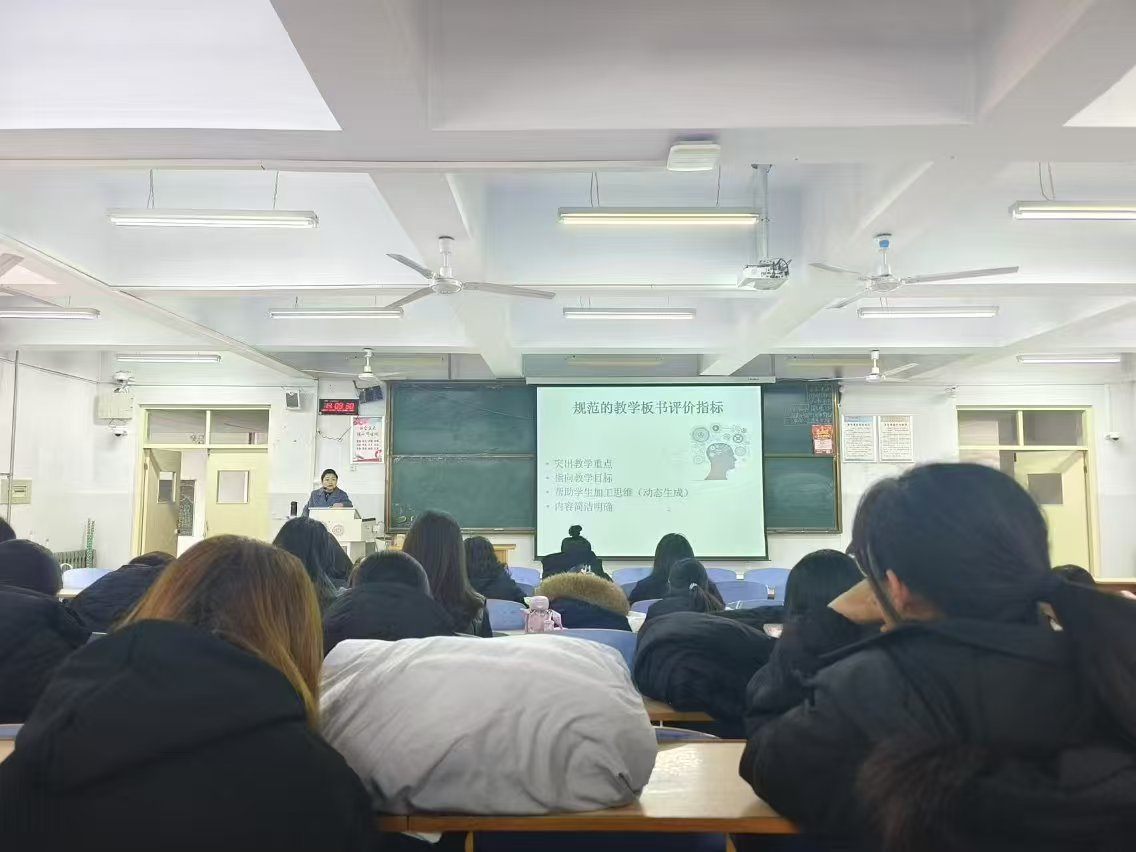 2024年10月24日,Beat365唯一官方网站研究生教学部主任刘晓冰副教授受邀为英语22级同学开展英语板书设计教学工作坊。刘老师介绍了英语板书设计的重要性、适用场合、评价指标等,展示了优秀的板书设计的构成与价值,并进行现场示范。然后让学生亲自体验黑板板书设计,刘老师随时进行指导和点评,学生参与热情高涨,效果良好。