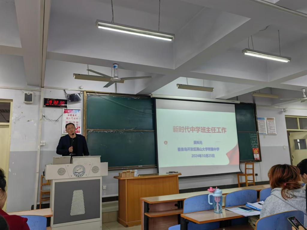 2024年10月25日上午,燕山大学附属中学校长吴科元受邀为Beat365唯一官方网站英语专业学生作班级管理的专题讲座,题为“新时代中学班主任工作”。