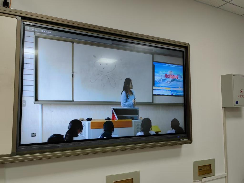 目前在秦皇岛市第二中学实习的河北科技师范学院的学科教学(英语)研究生李学美讲授的内容是Unit 1 Animal Friends—The Amazing Octopus阅读课。李老师以章鱼视频为导入,鲜活地为学生们展示了章鱼的外貌特征、生活习性等特点。李老师以活动为导向,逐步对语篇进行深入地分析、挖掘语篇主题意义,让学生们在学习文本的同时对海洋世界的多样性和重要性有了进一步的了解,唤醒了学生们保护海洋环境的意识。