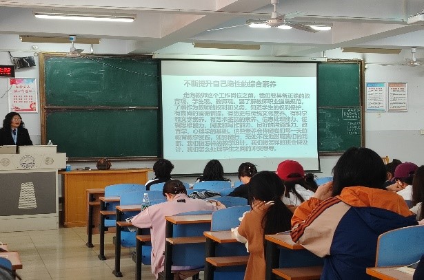 陈丽老师首先通过教学教育实例声情并茂地向学生讲述了一个优秀教师应该具备的基本素质,强调作为一名中学教师,首先要对学生有深沉的爱,要有高度的责任心和使命感。同时陈丽老师还结合自身的教学经历,告诫学生在学习阶段要锤炼教学能力。从备课、讲课到反思等各个环节都要脚踏实地,一步步积累,“只有肯下笨功夫,才有真功夫”。