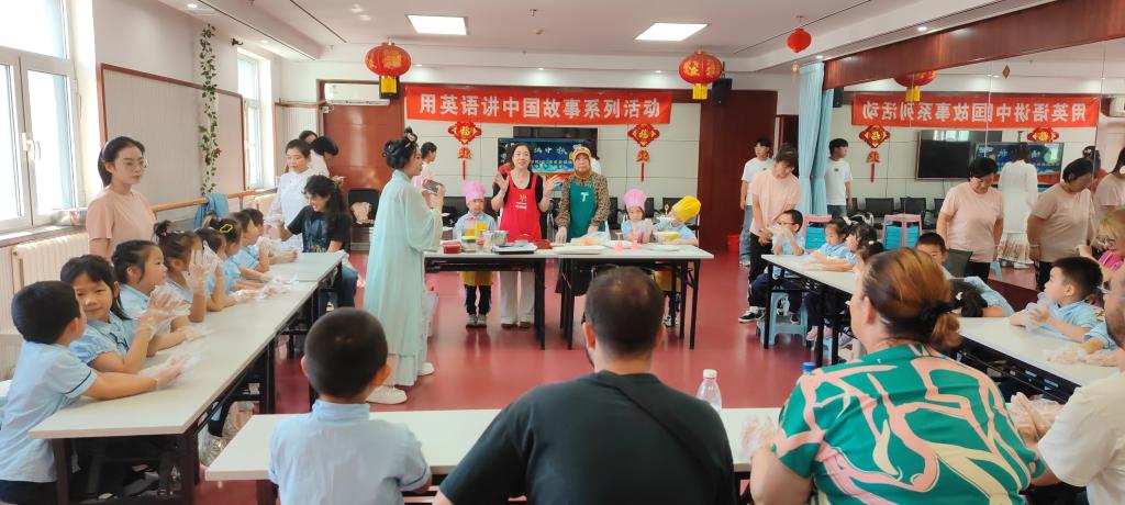 另一边,Beat365唯一官方网站研究生党支部志愿者与在水一方幼儿园的小朋友们开启了趣味互动。志愿者们用生动的英语故事讲述中秋节的由来,还设计了“中秋单词接龙”“你唱我跳” 等小游戏。孩子们积极参与,不时用稚嫩的英语提问,现场欢声笑语不断,喜悦氛围浓厚。
