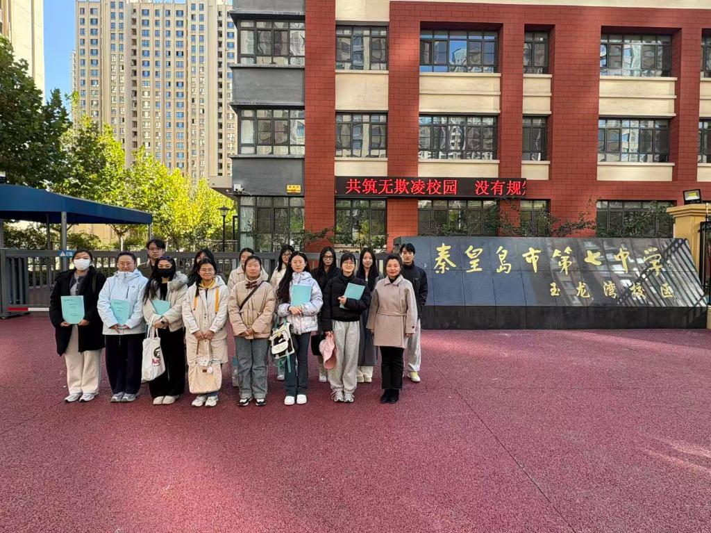 2025年10月22日Beat365唯一官方网站组织25级教育硕士研究生到秦皇岛市第七中学玉龙湾校区进行教育见习,此次见习主要内容是参观校园文化建设、了解学校的德育工作及观摩爱国主义朗诵比赛。