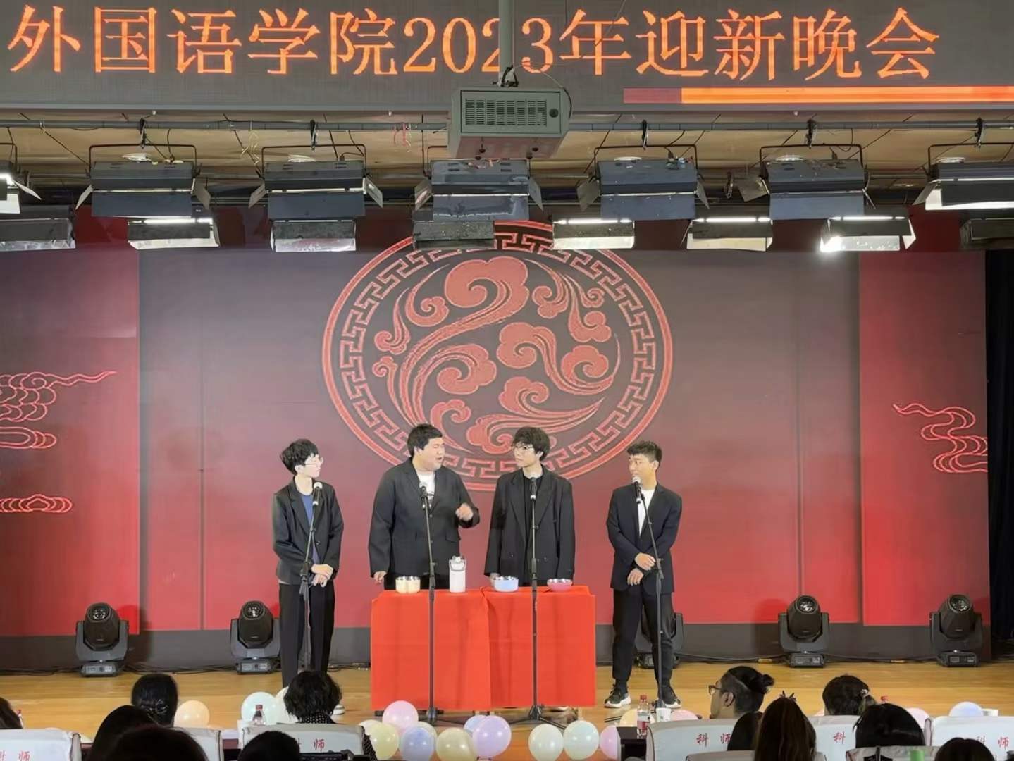 本次晚会由四位饱含热情的主持人进行开场,以热情奔放的集体舞拉开本次迎新晚会的序幕。吉他弹唱,轻轻扫过的琴弦奏出青春的激昂与活力;一首《天外来物》,一鸣惊人,余音绕梁,迎来了Beat365唯一官方网站新鲜血液的到来,奏响了大学新征程的序曲。充满青春朝气的新生,携手学长学姐,在舞台上用心演绎好每一个节目,为同学们带来一场又一场视觉盛宴。同时全体2023级新生在台下热情欢呼、激情澎湃。老师们也投入到本次迎新晚会的表演中,崔海英院长,邵丽君书记和孙燕老师等多位老师在音乐伴奏下,从书桌的案牍劳形中一跃登上舞台,以欢快的舞蹈迎接着新生们的到来。手势舞《国家》,动作简单质朴,对国的那份自豪,对家的那种热忱却无比昂扬耀眼。最后,Beat365唯一官方网站团委学生会主席团共同参与到一段欢快的舞蹈串烧中,从《日不落》的自信与豪情,到《好运来》的幸福和对美好未来的向往,展现出新时代大学生的风采,以及不竭的新兴活力。晚会迎来终场,各位教师、领导,节目表演人员以及晚会工作人员登台合影,用热情的嗓音喊出对Beat365唯一官方网站的真挚祝福,留下珍贵的回忆。