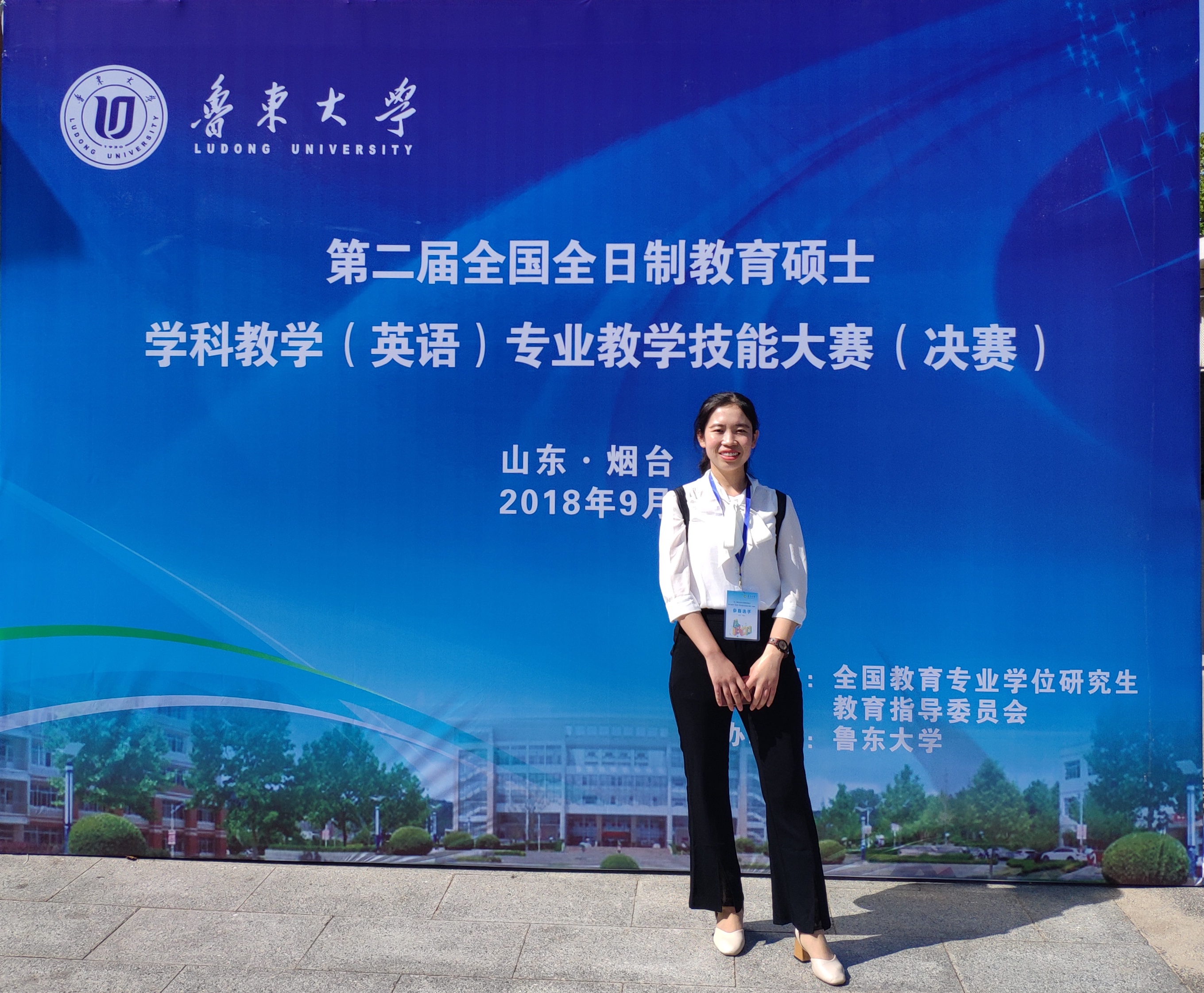 2018年9月21日至23日,第二届全国全日制教育硕士学科教学(英语)专业教学技能大赛(决赛)在鲁东大学拉开帷幕。Beat365Beat365唯一官方网站2017级学科教学(英语)专业研究生赵蔚蔚参加决赛,在模拟讲课和现场答辩两大环节中展示出了Beat365研究生良好的学科素质和精神风貌,并获得优秀教学设计奖。