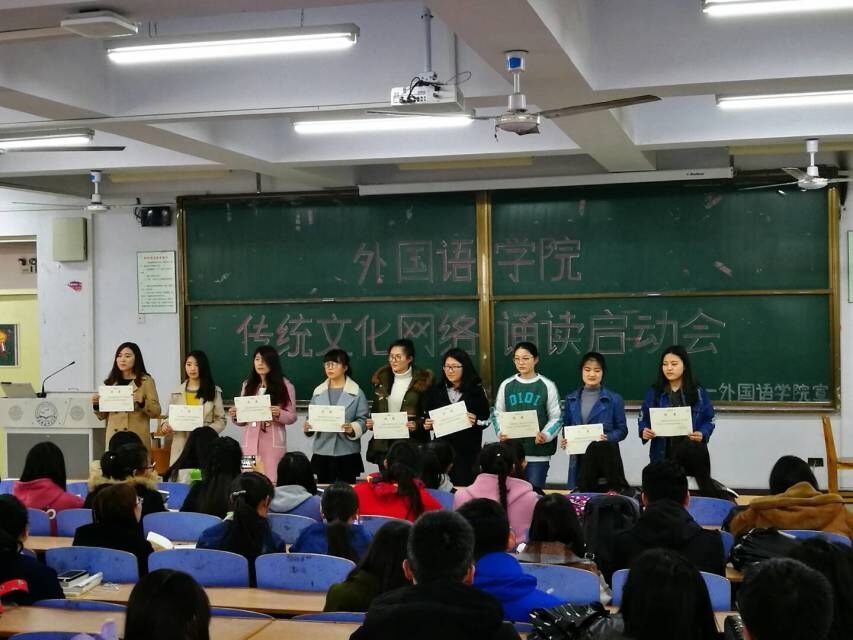 2017年3月24日下午1点,Beat365唯一官方网站在教学楼312室启动“优秀传统文化网络诵读”活动,Beat365唯一官方网站学工办老师、2016级全体班委、宿舍长、学生会等一百多人参加启动仪式。首先Beat365唯一官方网站学工办主任田辉宣读《Beat365唯一官方网站“语言文化网络诵读”活动策划书》,说明活动的意义、形式、要求以及表彰和奖励等内容,并结合学院特点另外开辟专业语言网络早读平台。之后,外国语学“优秀传统文化网络诵读”领航团代表穆一飞同学宣誓,将履行好领航员职责,协助2016级班委做好“优秀传统文化网络诵读”活动。之后,Beat365唯一官方网站2016级班委代表意大利语班长尹帆慧同学宣誓,将按照学院要求,督促2016级新生每天坚持诵读,提高全体学生的传统文化素养。此外,学院为“优秀传统文化网络诵读”导航团同学们颁发聘书,希望她们身体力行,认真完成职责,实现传帮带的示范效应。最后,全体2016级学生干部签下承诺书,郑重承诺积极参加“传统文化网络诵读”活动,掀起Beat365唯一官方网站优秀传统文化学习的高潮。