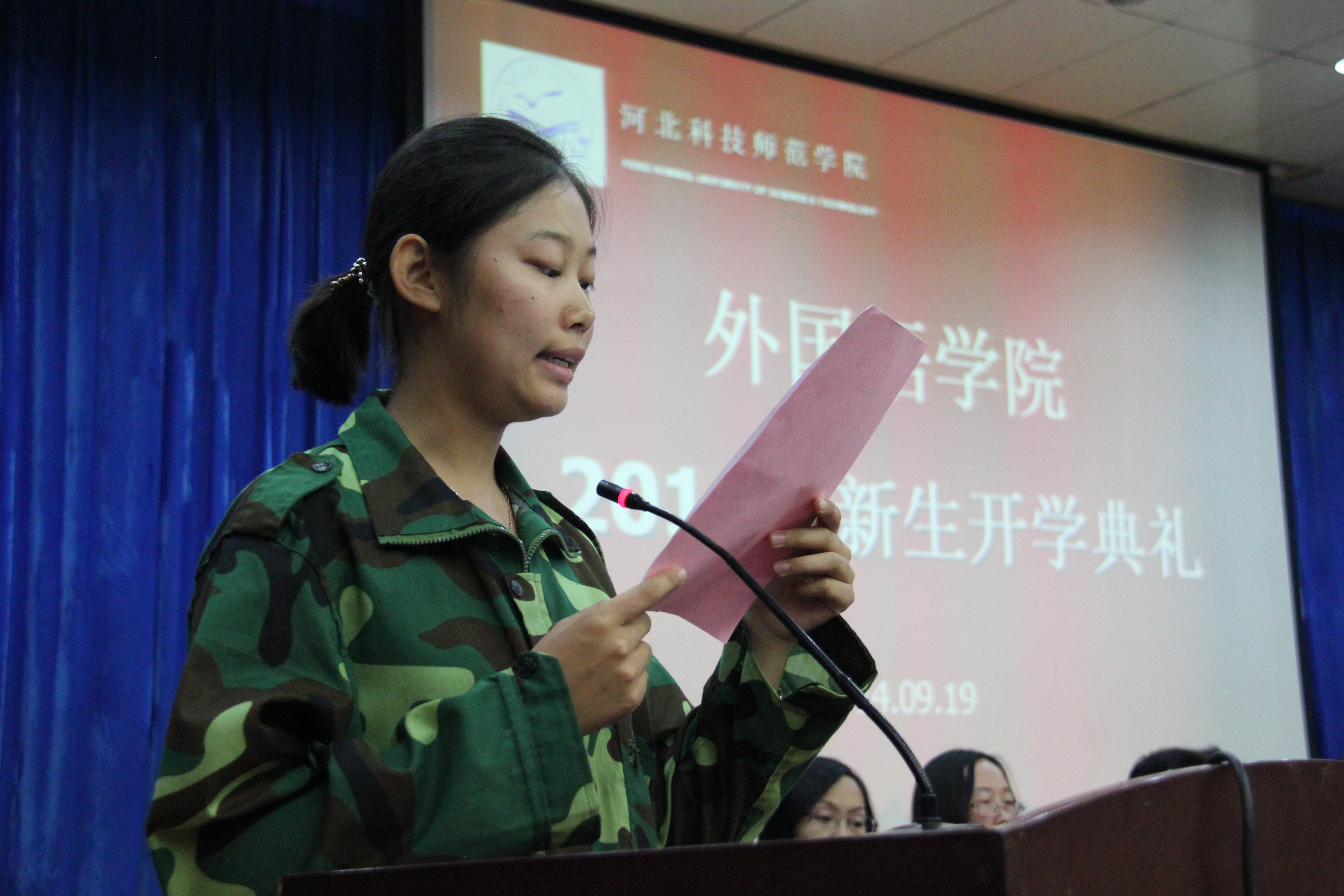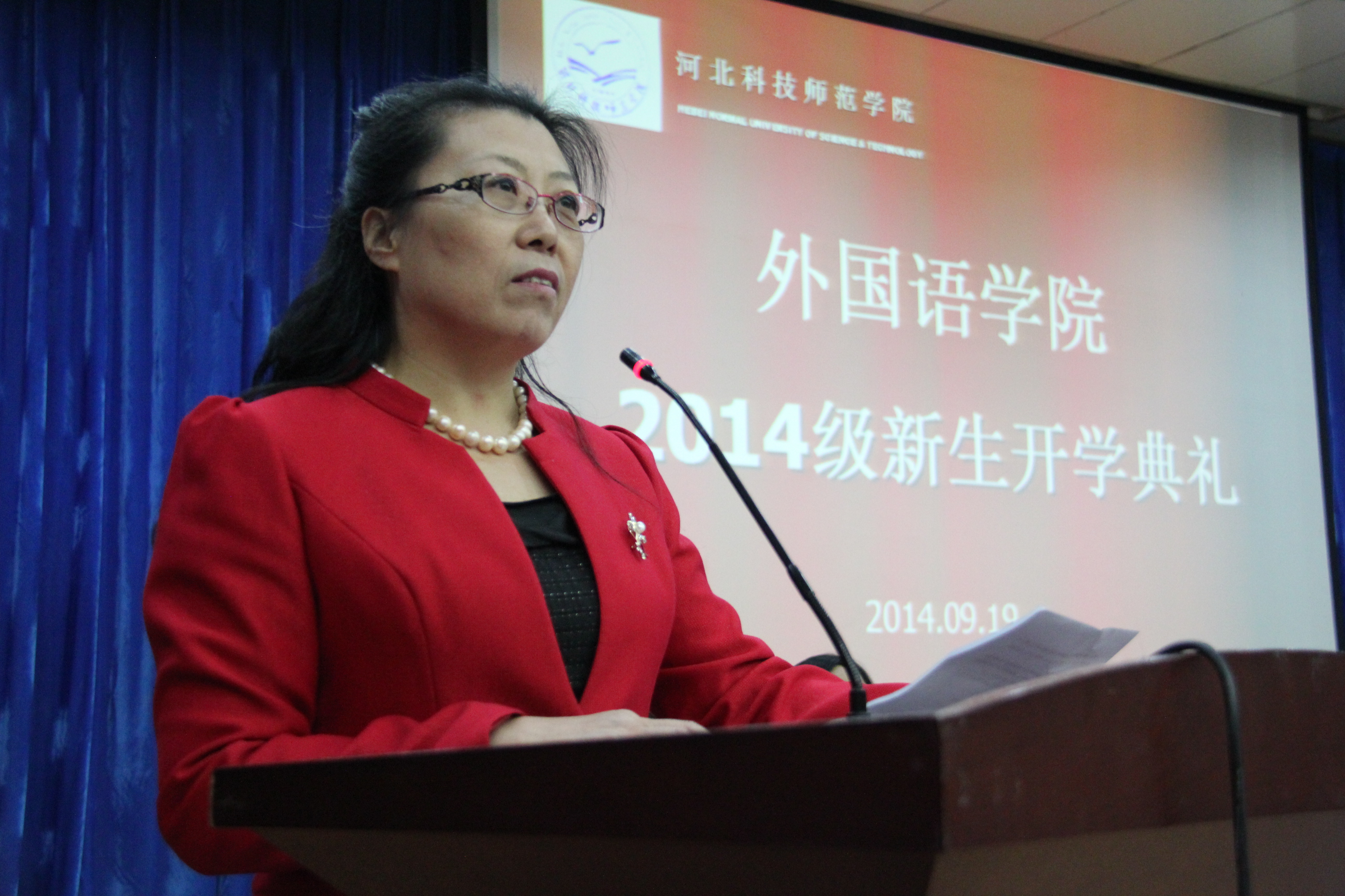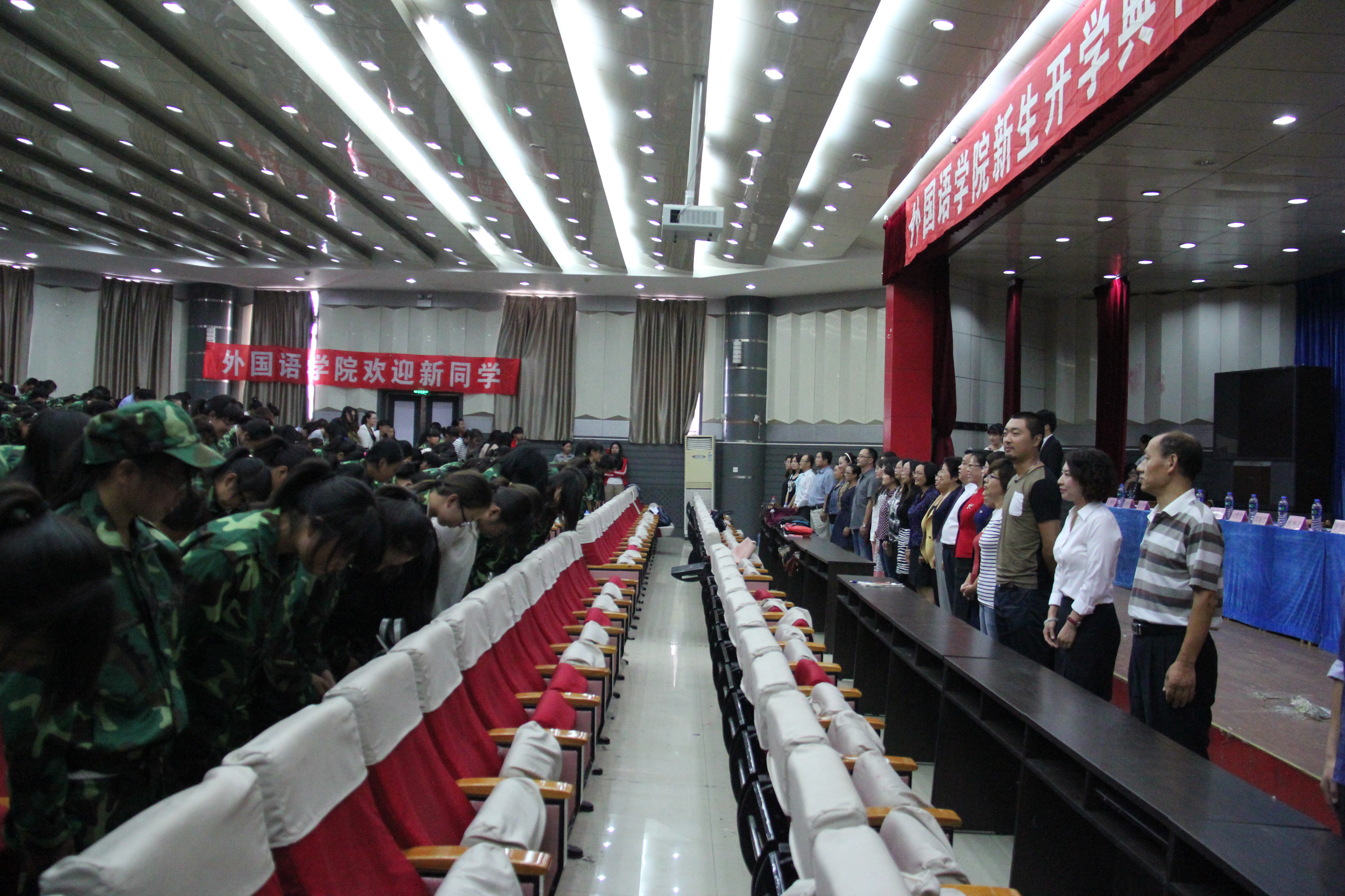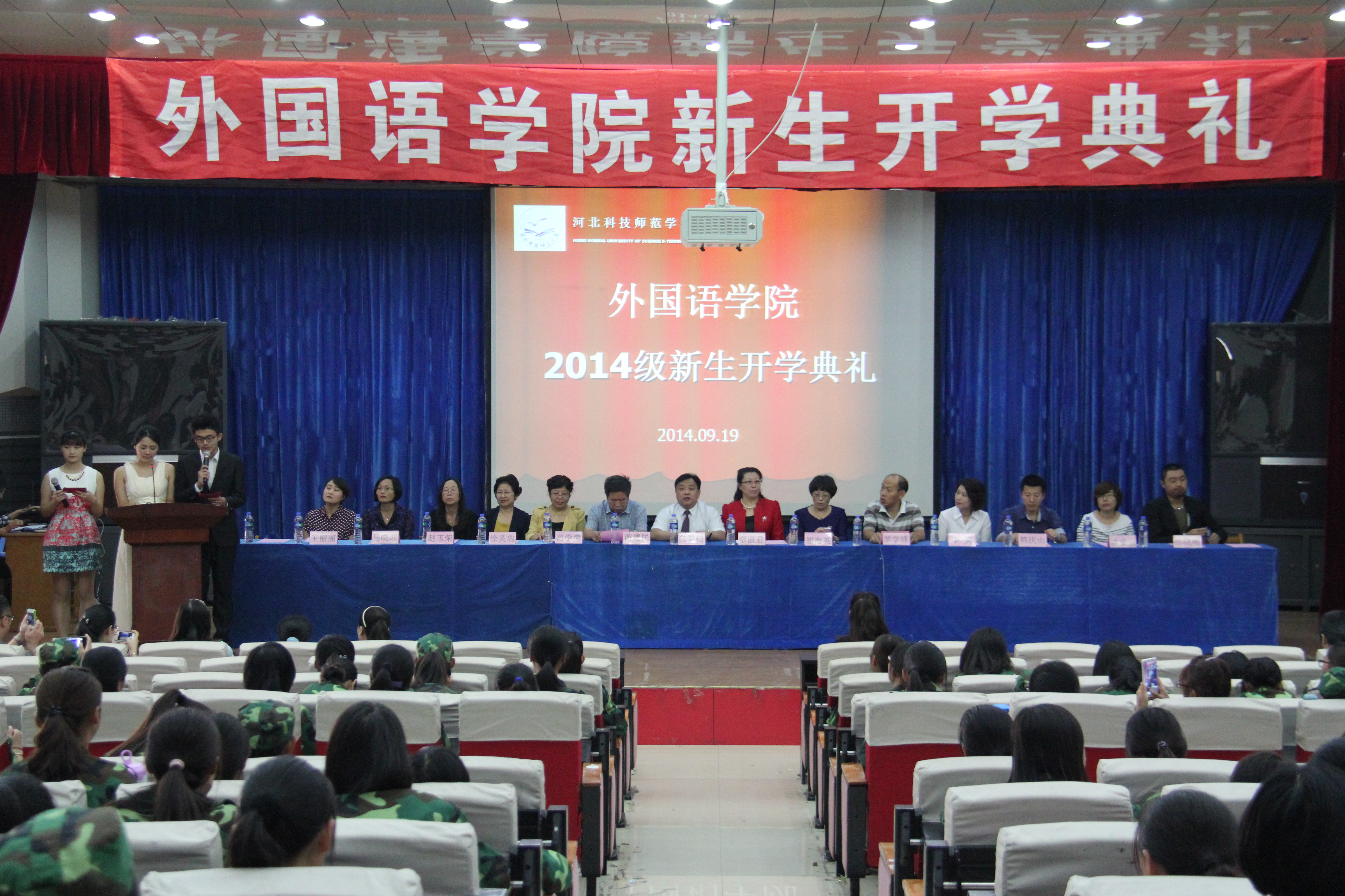 9月19日上午,Beat365唯一官方网站在开发区学术报告厅为全体2014级311名新生举行庄严的开学典礼。学院党政领导、教师以及2014级全体新生齐聚典礼。开学典礼现场突显Beat365唯一官方网站特色,除了现场悬挂中文、英语、日语等语言的欢迎条幅营造氛围以外,还采用了汉英双语主持。