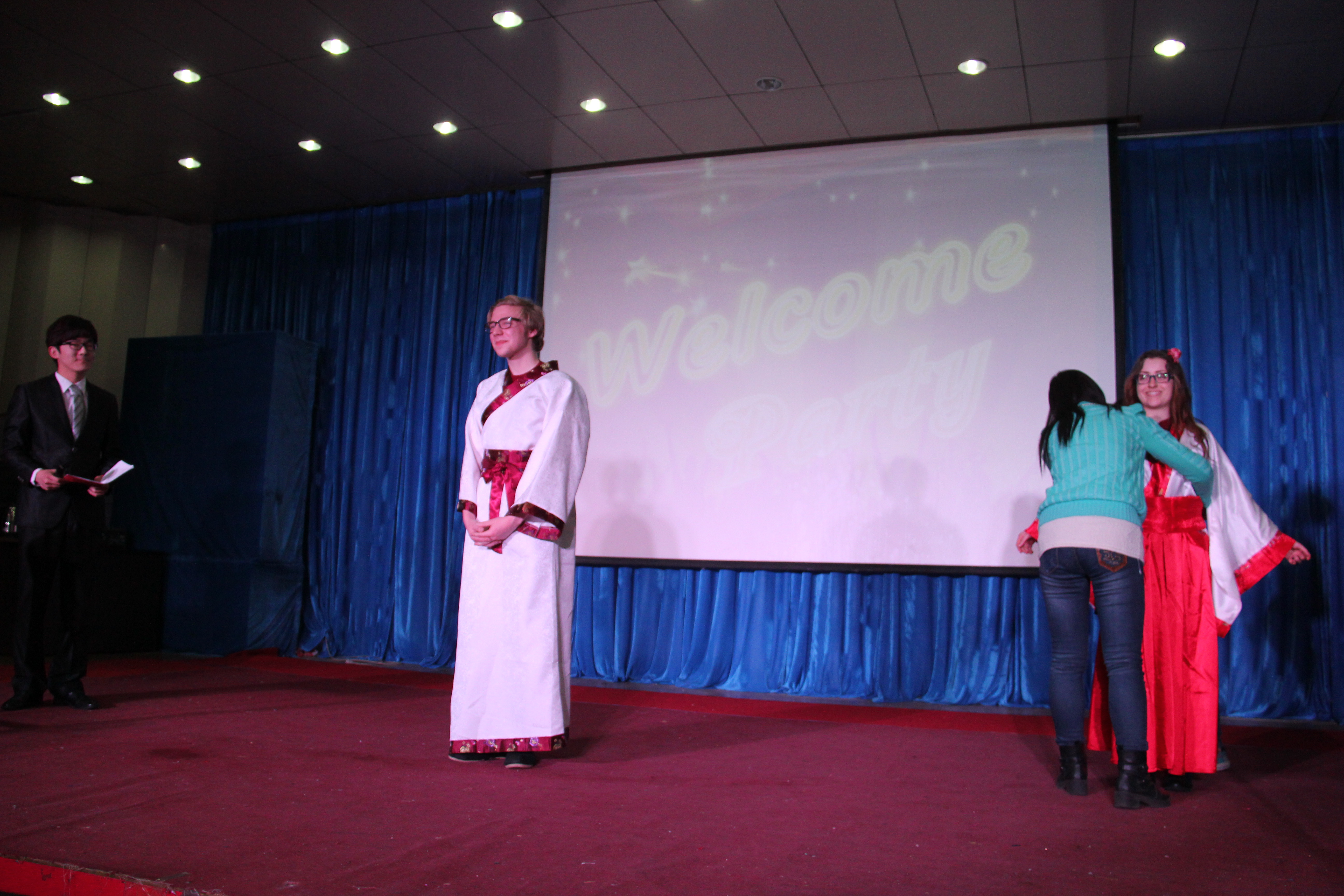 2014年3月28晚7点30分,河北科技师范学院Beat365唯一官方网站在综合楼学术报告厅举办了主题为“欢迎美国友人”的晚会。来自美国Enloe高中的14名师生、Beat365唯一官方网站院长邵丽君、国际交流处郁洋老师及Beat365唯一官方网站的同学们一起观看了本次晚会。