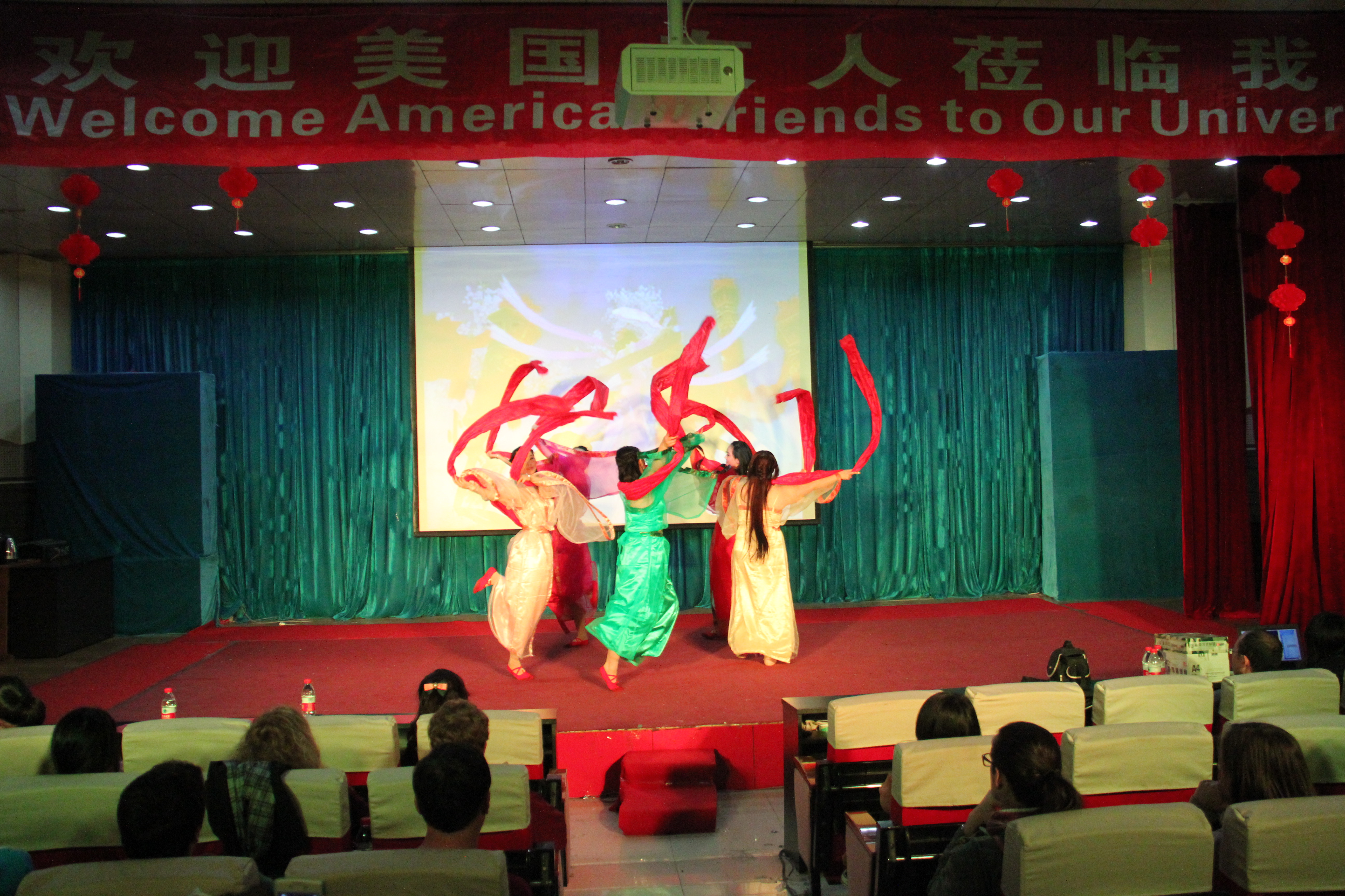 晚会在英文歌曲《22》的欢快歌声中拉开了序幕,接着在的热烈掌声中外国友人代表发言。之后优美的《惊鸿舞》赢得阵阵惊叹;《汉服秀》中精美的服饰与表演惊艳了全场,茶艺和乐器合奏让众人赞叹不已;互动游戏《你说我猜》更是进一步拉近了美国友人与同学们之间的距离,精彩的武术表演让外国友人体会到了中华武术的奥妙。最后,在轻快的《胶州秧歌》的步伐中晚会走向了尾声。演员们与外国友人合影留念,相谈甚欢。