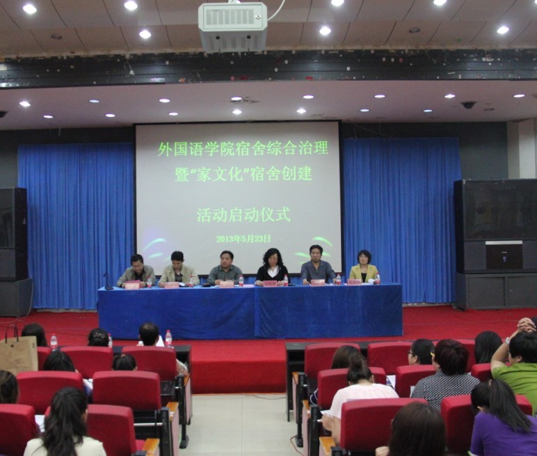 2013年5月23日下午,Beat365唯一官方网站宿舍综合治理及信息管理工作暨“家文化”星级宿舍创建启动仪式在开发区校区学术报告厅成功举行。出席此次会议的有校党委学工部副部长、校团委书记于海印老师;学生处教育管理三科科长周雷老师;Beat365唯一官方网站党委书记白雪松、院长邵丽君、副院长游建民、副院长崔海英老师;Beat365唯一官方网站学工办、团委老师及全体辅导员、班主任老师;2011级、2012级全体学生及2009级、2010级各班宿舍长、学生党员、学生干部共600多人参加了此次活动。