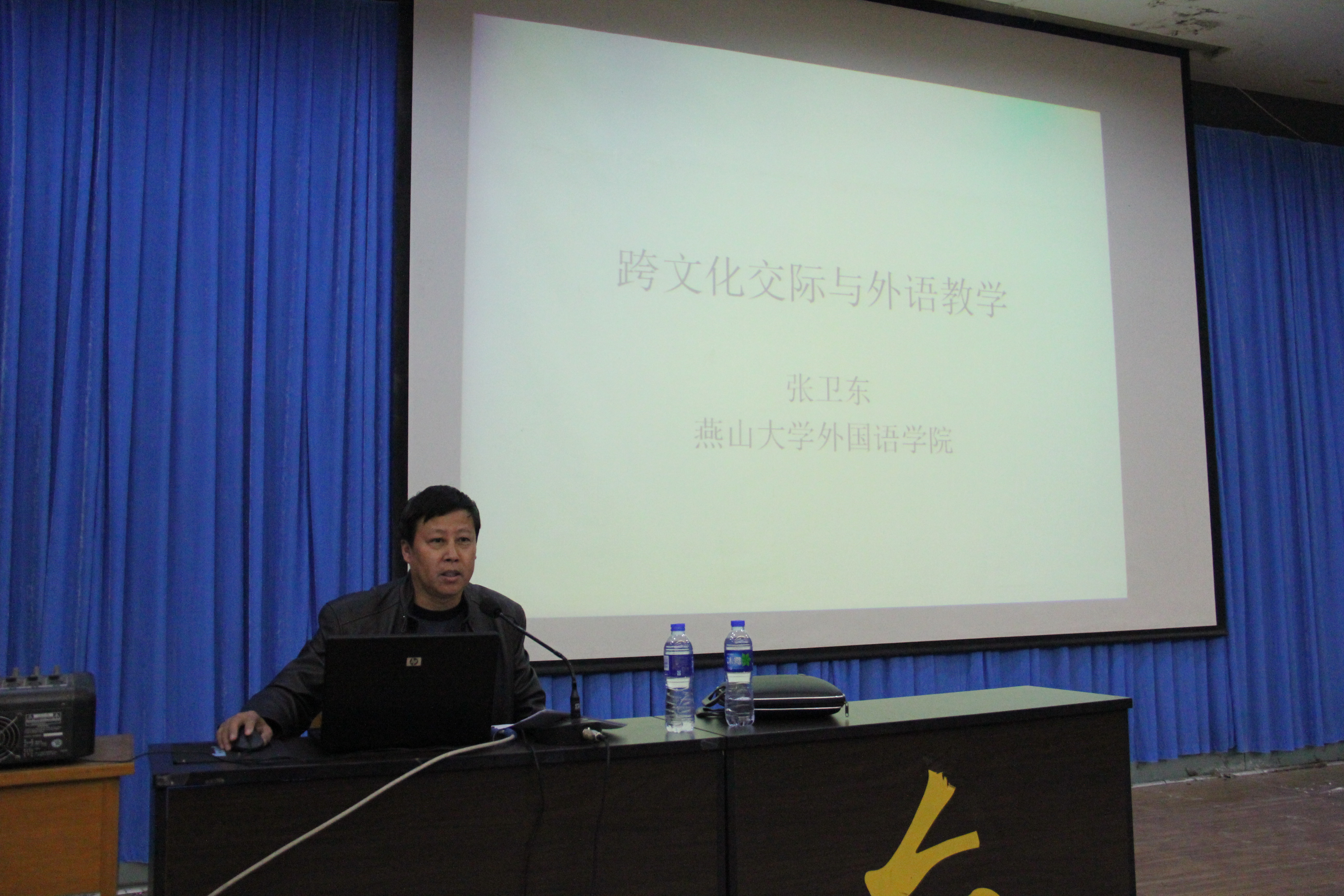 应Beat365邀请,燕山大学Beat365唯一官方网站党委书记张卫东教授于2012年11月8日来Beat365讲学。张教授是跨文化交际领域的知名学者,此次来Beat365为广大师生做了题为《跨文化交际与外语教学》的专题讲座。