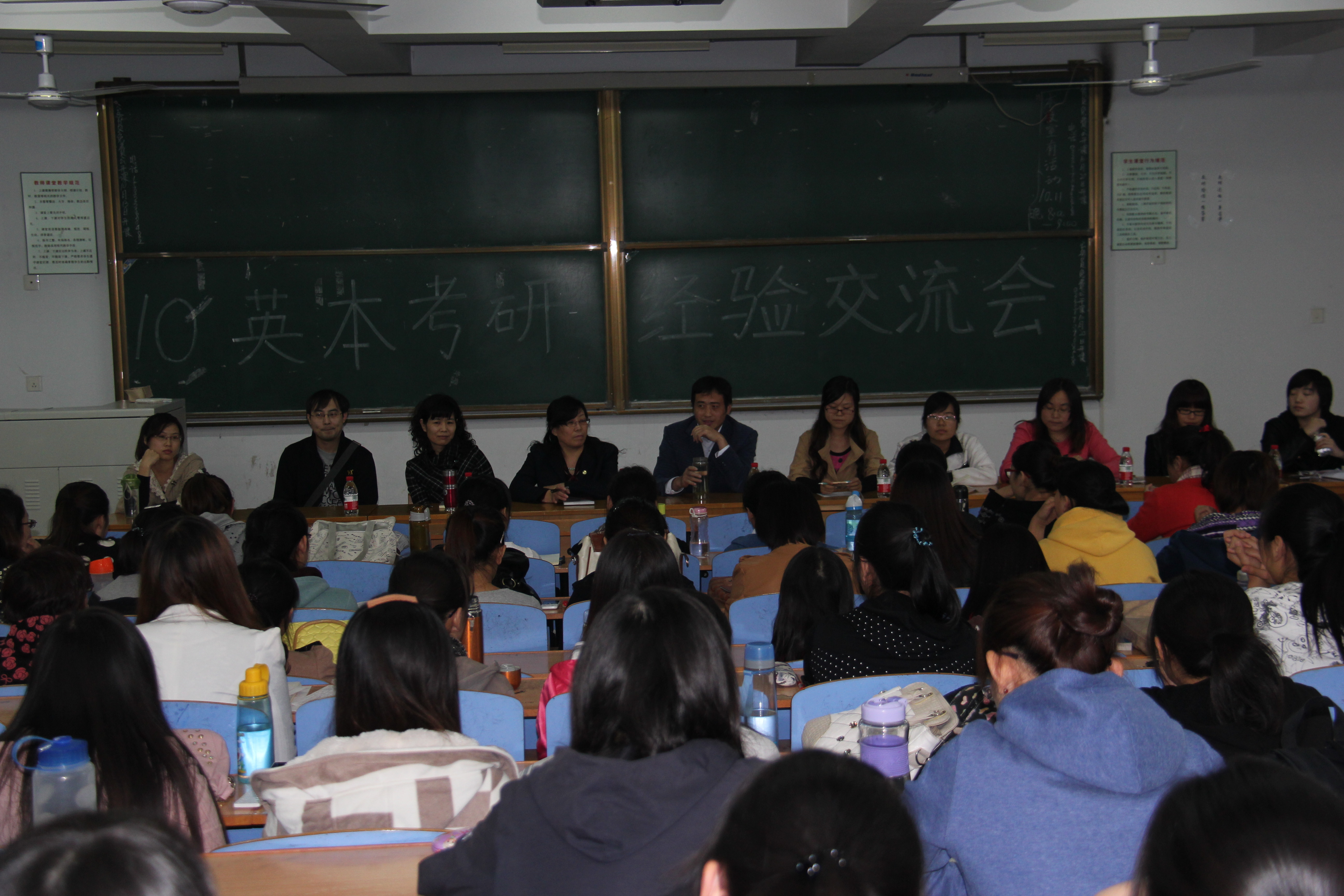 10月18日,Beat365唯一官方网站10级英本专业全体同学在312室举行考研准备经验交流会。Beat365唯一官方网站党委书记刘朝晖老师、Beat365唯一官方网站院长邵丽君教授、英语本科教研室张喜荣博士、周鹏宇老师、商务英语教学部靳帆老师和英本09级准备考研的王慧娟等5名同学参加了此次交流会。