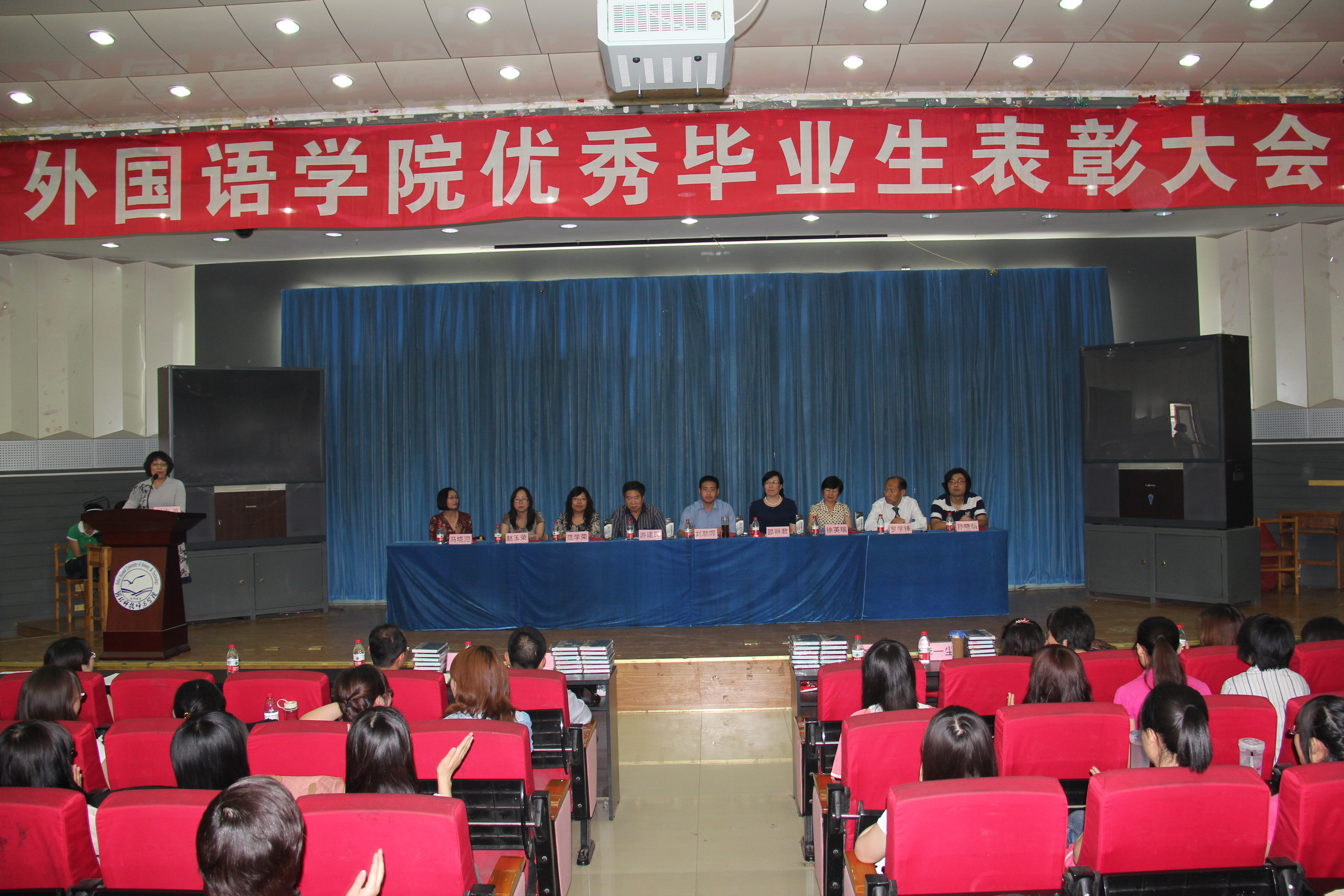 为进一步加强学风建设,树立典型,充分发挥优秀毕业生的示范激励作用,同时鼓舞学院学生考研的积极性和主动性,Beat365唯一官方网站于6月12日在开发区学术报告厅召开2012届优秀毕业生表彰大会。大会由Beat365唯一官方网站副院长崔海英副教授主持。出席大会的领导和老师有Beat365唯一官方网站党委书记刘朝晖老师、院长邵丽君教授、副院长游建民教授、英语本科教学部主任范学荣副教授以及教师代表徐英瑞教授、赵玉荣博士、罗学锋副教授、马晓迎副教授、孙晓萌老师。另外参加表彰会的还有Beat3652010届优秀毕业生、现任海港区政协委员、大学生村官、海港区海阳镇海阳四村党支部副书记、海天考研培训学校营销部张超经理。09、10级全体本科生参加了大会。表彰大会由Beat365唯一官方网站副院长崔海英老师主持。