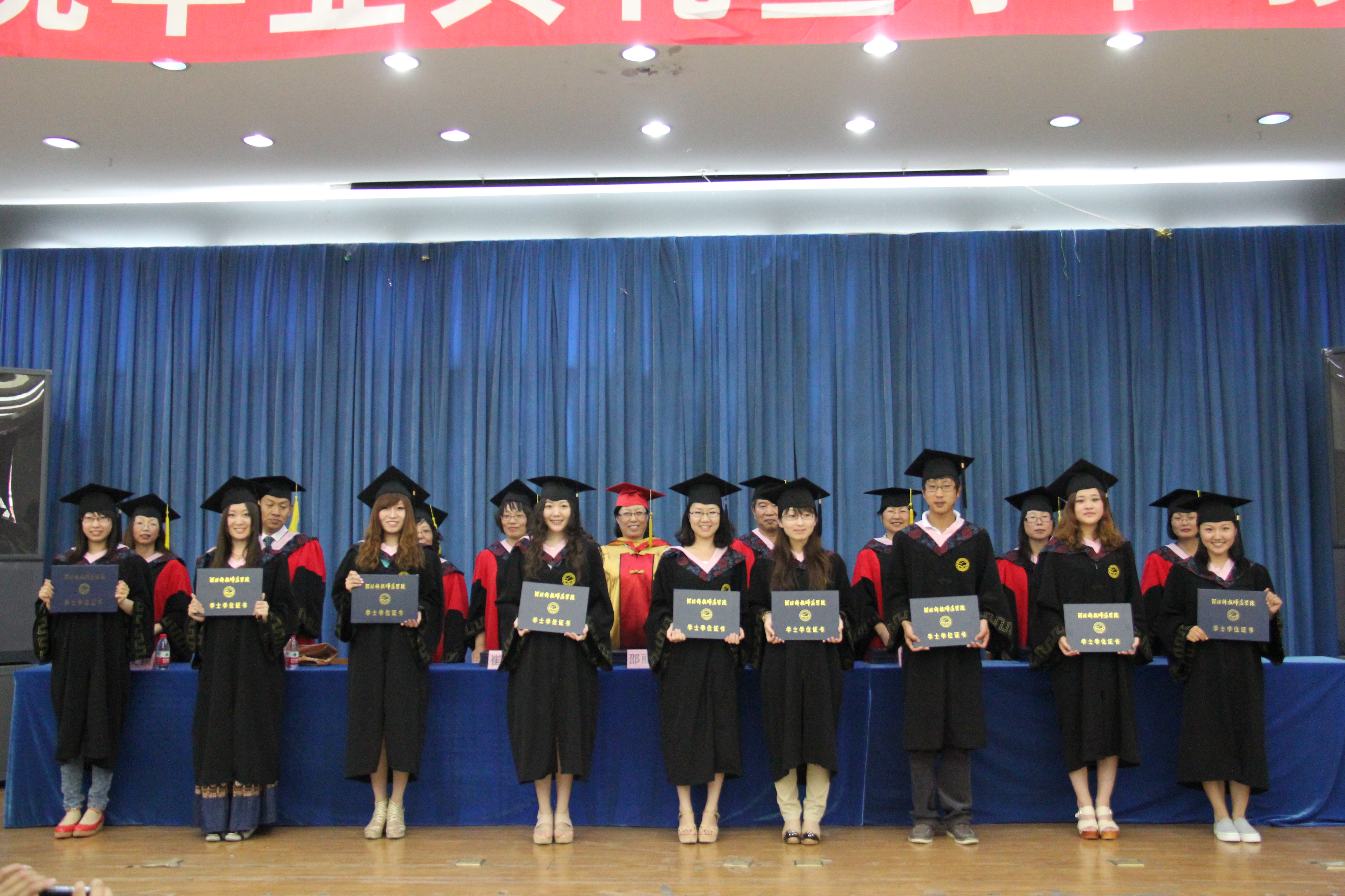 毕业典礼之后,由Beat365唯一官方网站党委书记刘朝晖老师主持了2012届本科毕业生学位授予仪式,授予学位的领导和导师有Beat365唯一官方网站院长邵丽君教授;副院长游建民教授;副院长崔海英副教授;应用英语教学部主任主任马晓迎副教授;英语专业教研室主任范学荣副教授;旅游英语专业教学部主任罗学锋副教授以及英语专业徐英瑞教授,赵玉荣副教授、应用英语专业郭文颖副教授。大会由刘朝晖书记宣读校学位评定委员会主席的委托词,由Beat365唯一官方网站院长邵丽君教授宣读授予学位的决议和名单,最后由各位导师为Beat365唯一官方网站144名获得学士学位的毕业生授予学位并颁发学位证书。(邵东蕊)