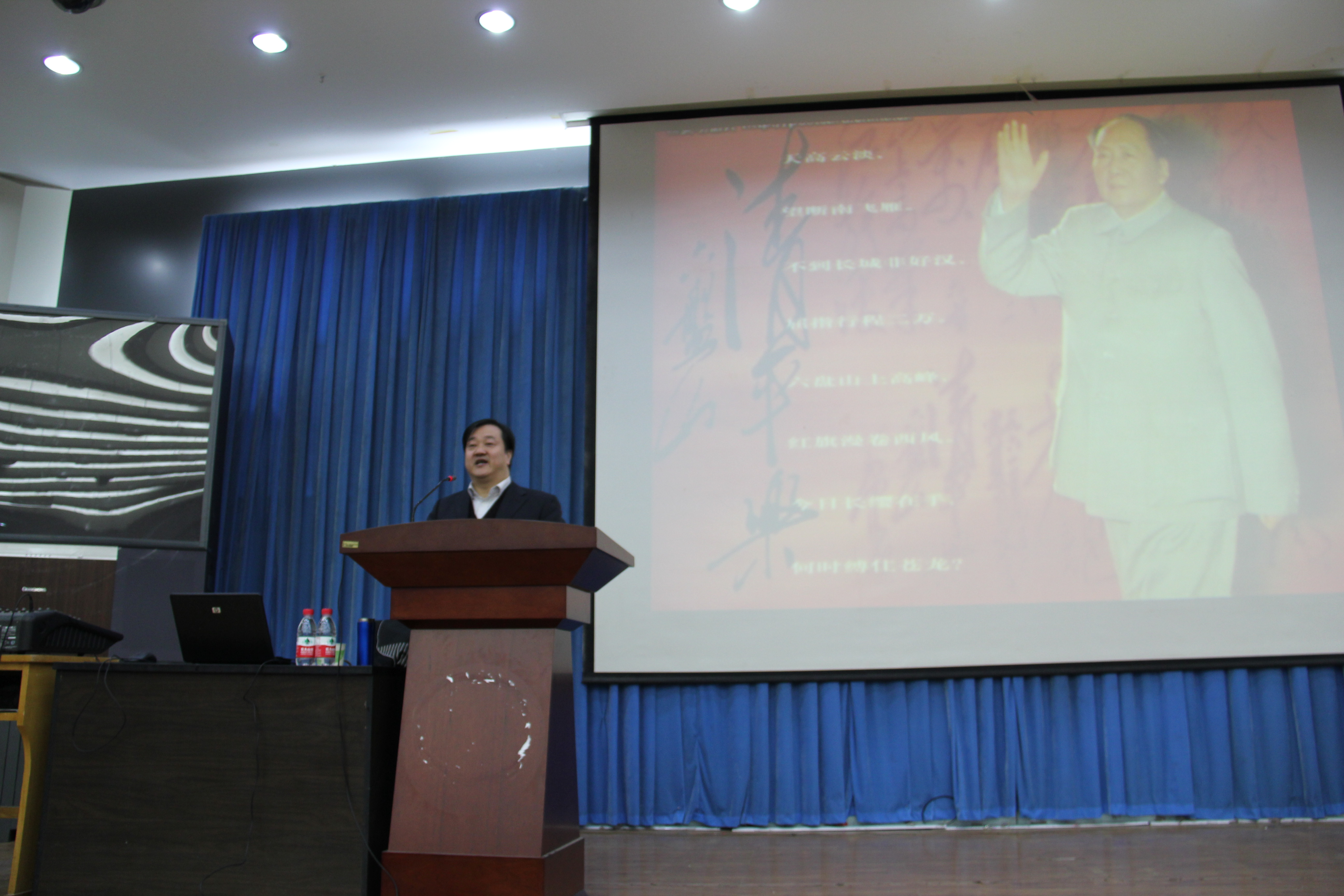 李正栓教授是河北省知名的中青年专家,是“河北省中青年社科专家五十人工程”人员。主要从事英美诗歌教学与研究、英汉诗互译及评论。此次报告,李教授正是以自己的研究专长为基础,结合毛泽东诗词,从专业翻译的角度,深入浅出地向广大师生讲解了在诗歌翻译过程中遇到的问题及翻译的技巧和方法。李教授声情并茂的朗诵、幽默的讲解无不深深地吸引了在场的师生,激发了学生学习英语的热情,增强了师生在诗歌翻译方面的兴趣。