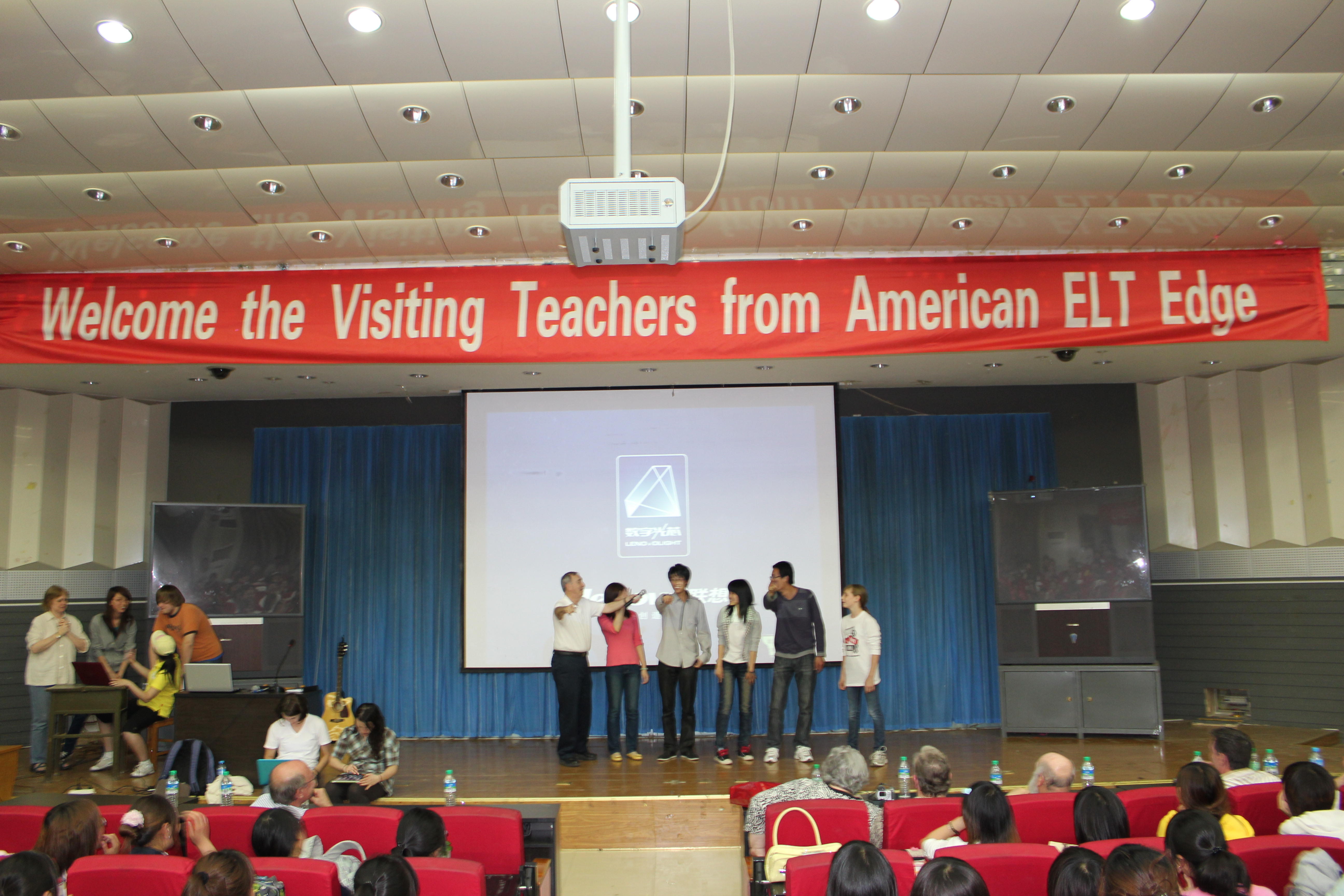 在第一天的活动中,ELT组织的教师们深入到课堂,参与到学生中间去,与学生们展开互动并积极指导学生们学习英语。当晚,在开发区校区报告厅举行了见面会。教师团的成员们为Beat365的师生们奉献了精彩的吉他弹唱、互动游戏和演讲。学生们热情参与,积极响应,非常珍惜这难得的机会。