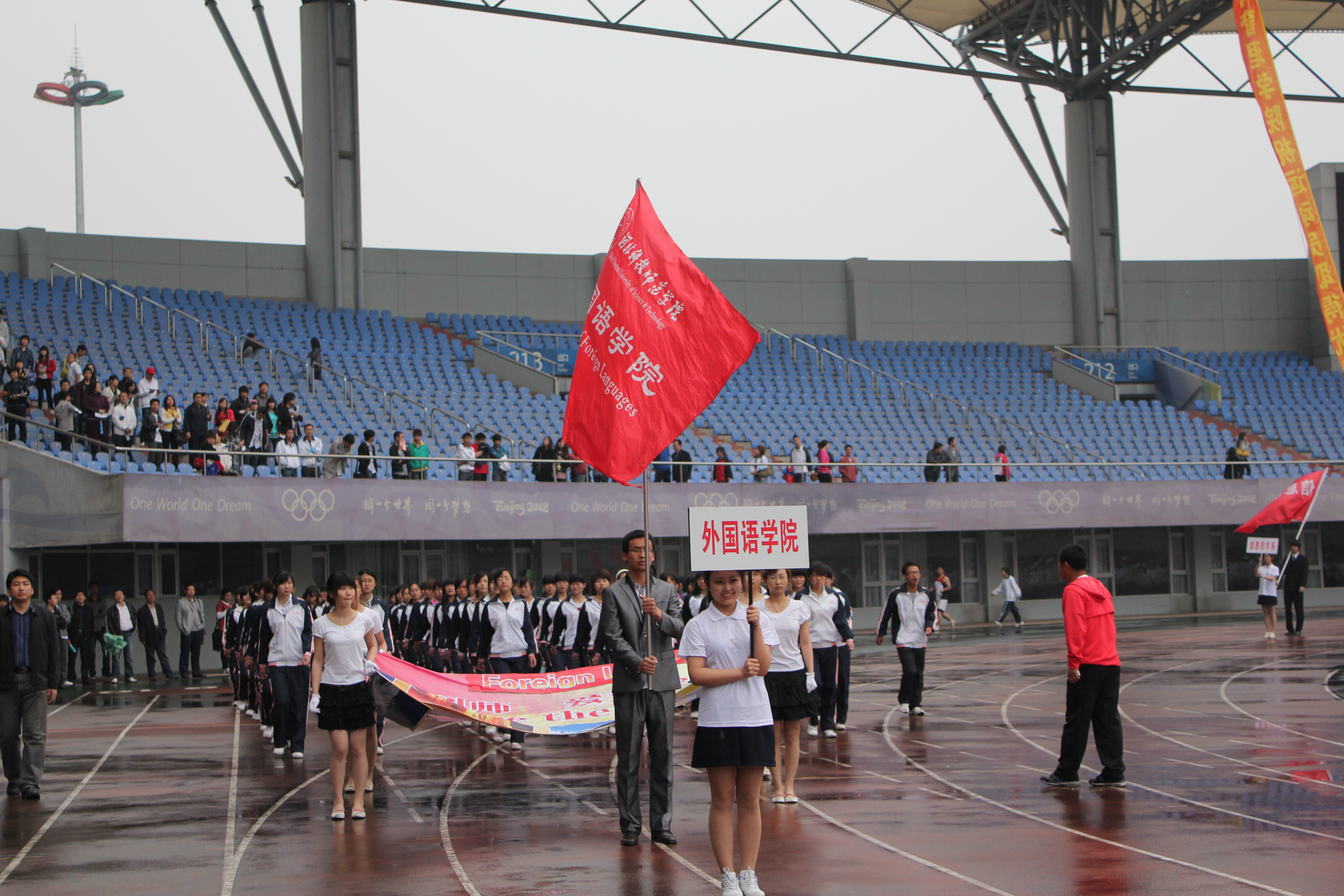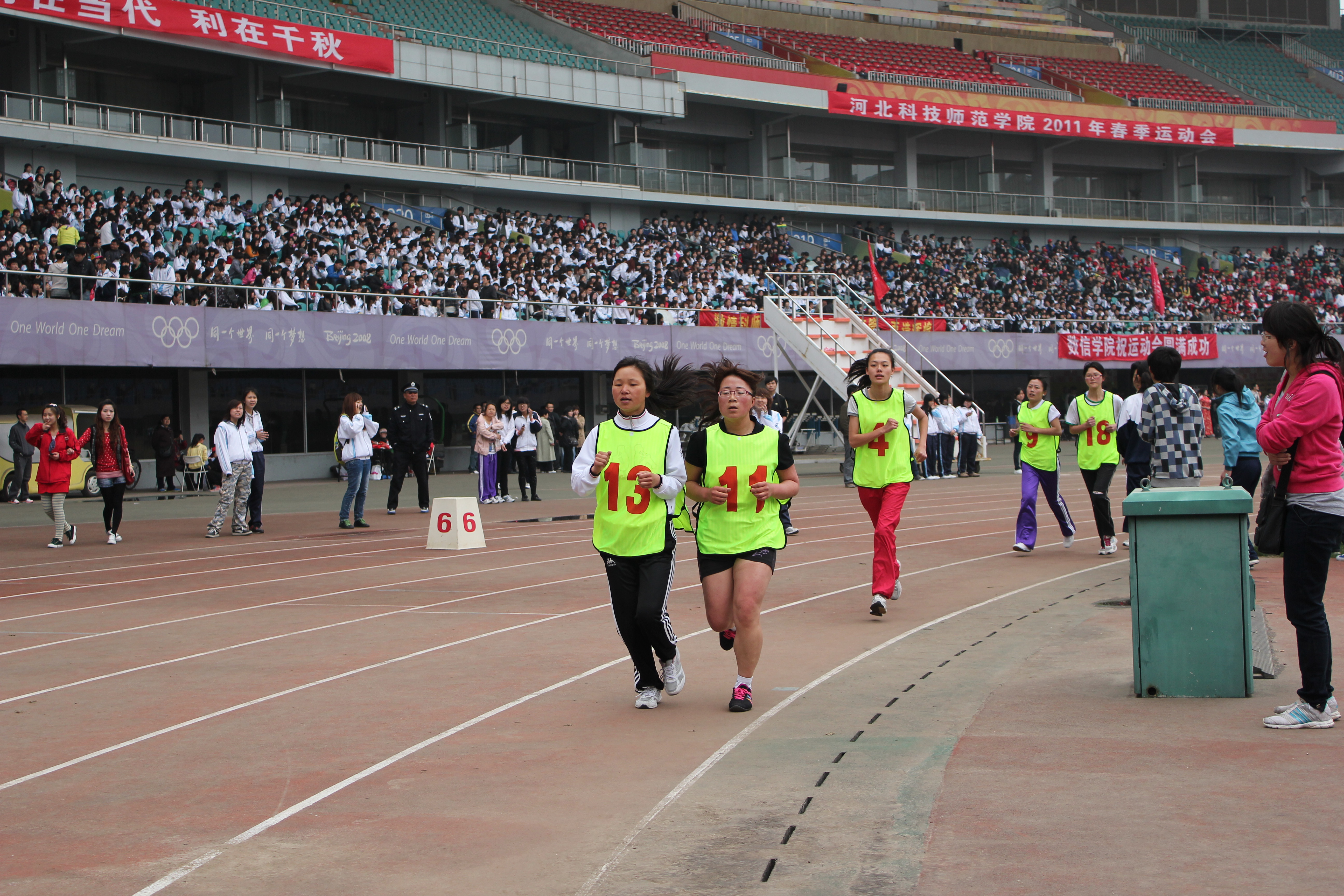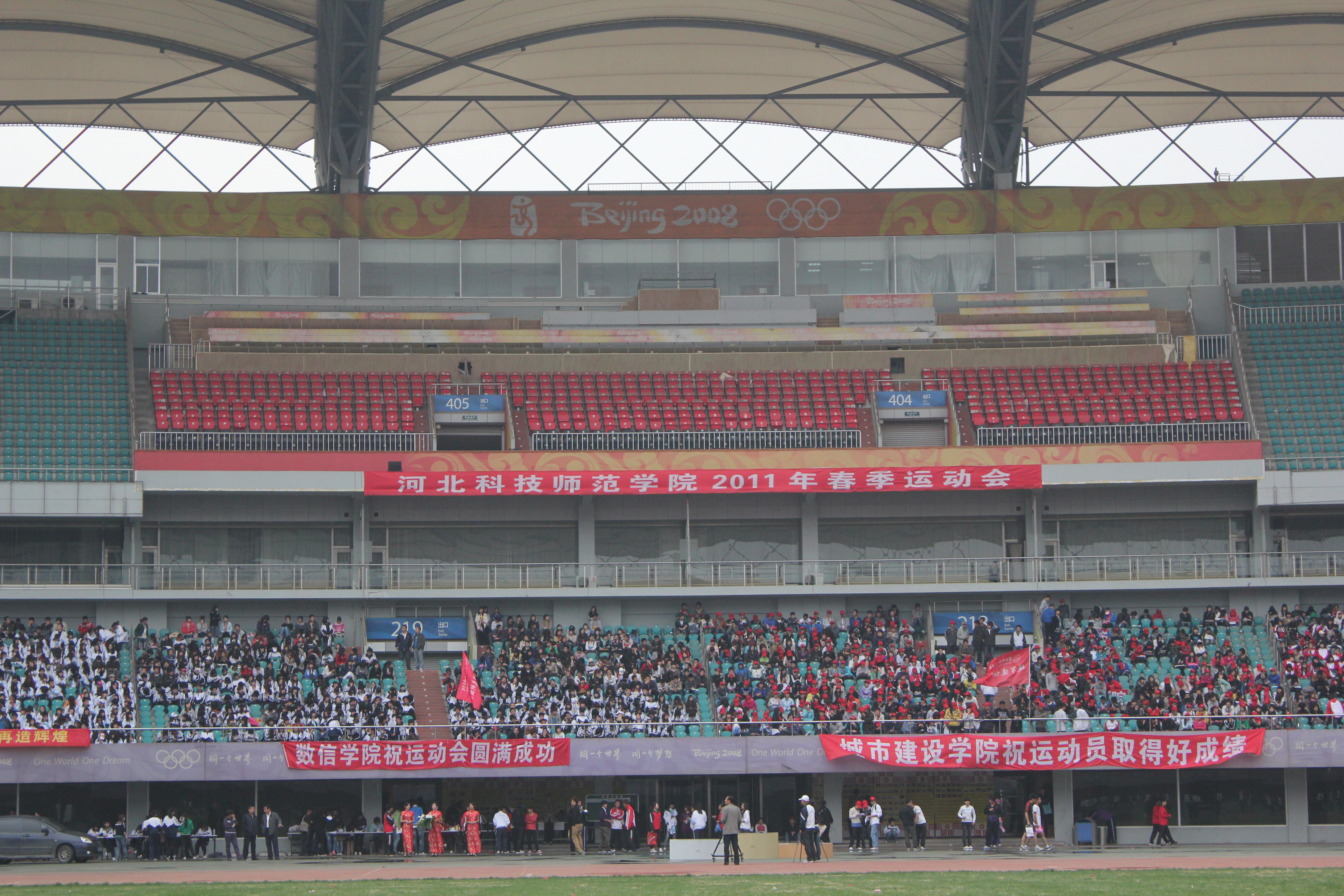2011年5月5日至6日,Beat365秦皇岛校区2011年春季田径运动会在奥体中心体育馆隆重举行。由Beat365700余名学生参与表演的团体太极拳成为开幕式的重头戏,受到与会领导及师生们的好评。运动会上Beat365健儿们努力拼搏勇创佳绩,一举夺得了团体总分第七名的好成绩。其中10级意大利语的张雪召同学获得男子三项全能第一名的好成绩,10级旅游英语的吴立川获得男子标枪第二名,10级旅游英语的贾丹丹获得女子1500米第三名的好成绩。学生们力争上游,教工们也不落后。Beat365教师在教工男子4×100接力赛中勇夺第二名,刷新了Beat365在此项赛事中新的记录。另有多名女教师在各项比赛中获奖。