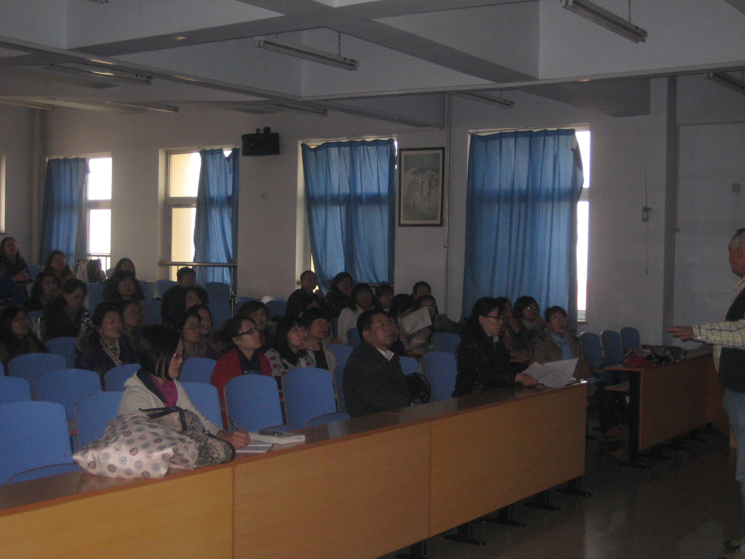 12月16日,Troy大学教授Freeman为Beat365唯一官方网站教师奉献了一堂生动的讲座。出席本次讲座的主要是Beat365唯一官方网站教授英语的教师们。Freeman教授就关于如何提高学生的课堂积极性,如何让学生更主动的参与到课堂教学方面的问题为大家做了详细的阐述和演示。通过一系列的课件和数据分析,让在座的教师们明白了学生积极参与对课堂教学的重要。各位教师和Freeman教授进行了良好的互动交流,纷纷表示受益匪浅。