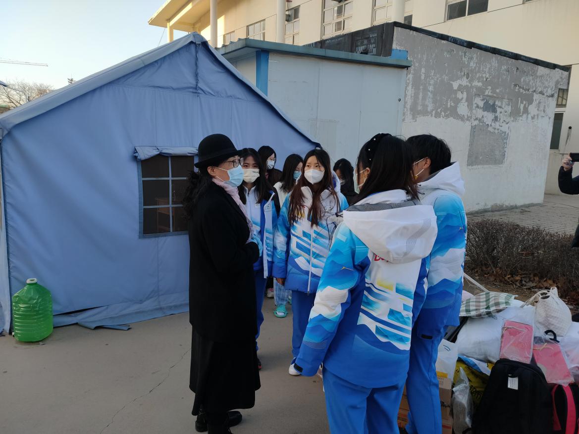 冬奥志愿者和老师们合影