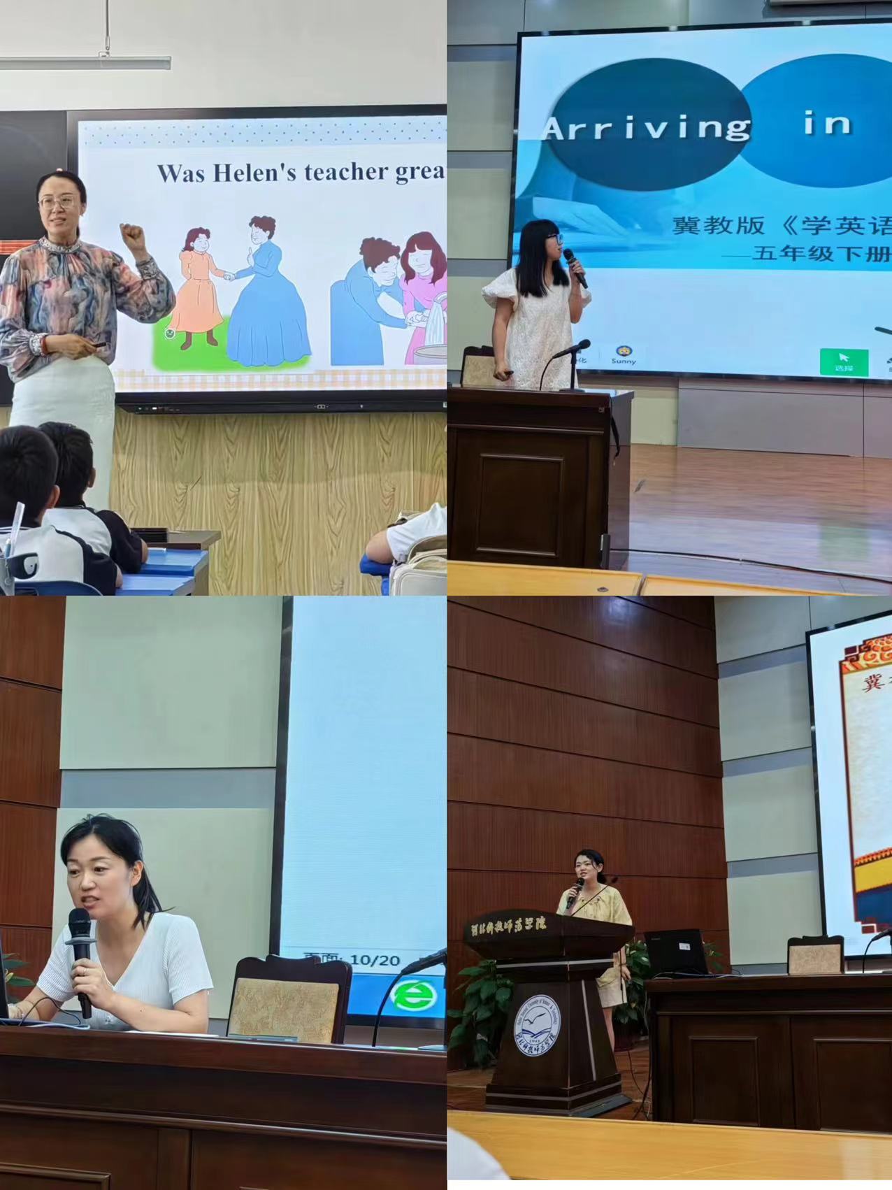 课后五位老师在河北科技师范学院学术报告厅进行说课展示,并同老师们就本次课例进行教学研讨。研讨时,老师们踊跃发言,提出了自己的教学疑问,五位老师从专业角度为老师们一一解答,现场气氛热烈。