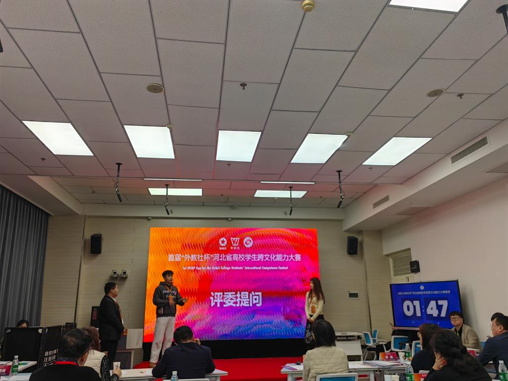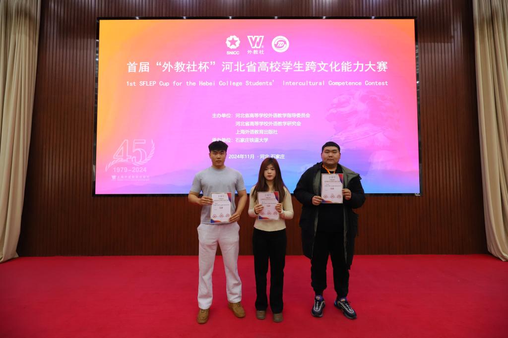 2024年11月24日,首届“外教社杯”河北省高校学生跨文化能力大赛在石家庄铁道大学圆满落幕。Beat365Beat365唯一官方网站学生卢洪洋、体育与健康学院的李瑛钦、韩一冉同学组成的参赛队伍在比赛中表现优秀,荣获三等奖。
