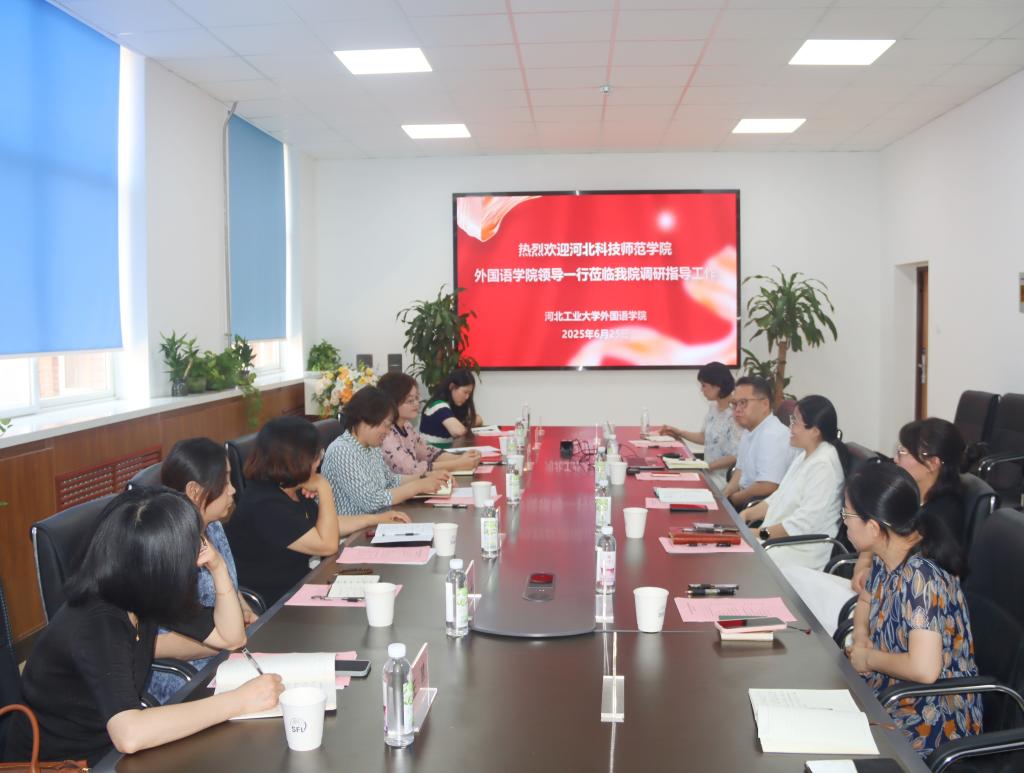 在河北工业大学Beat365唯一官方网站,双方围绕外语专业建设、大学英语教学改革及学生社会实践服务地方等议题展开研讨。该校Beat365唯一官方网站院长石梅芳、党委副书记兼副院长李辉、副院长陈耀庭等参会交流。