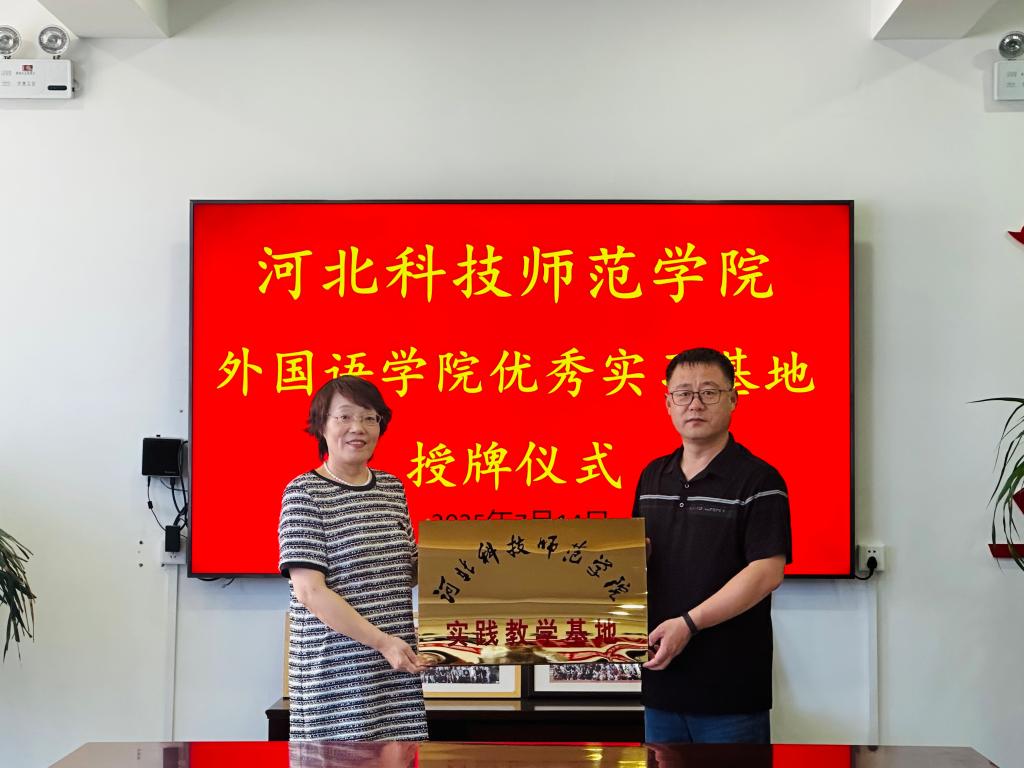7 月 14 日,河北科技师范学院Beat365唯一官方网站与抚宁二中 “实践教学基地” 共建授牌仪式顺利举行。抚宁二中党委书记杨松、校长丁成、副校长陈强、教务处主任洪林等基地代表、Beat365唯一官方网站院长崔海英、副院长王静出席仪式,共同见证这一重要时刻。