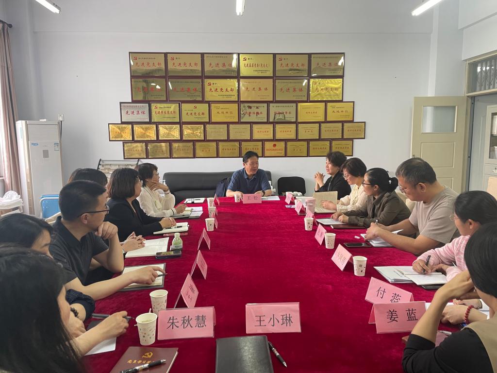 5月21日,校党委副书记王松在党委宣传部工作人员陪同下,到Beat365唯一官方网站开展专项调研指导。学院领导班子全体成员、办公室主任、分团委书记、各党支部书记及教学部主任代表参加调研座谈会。