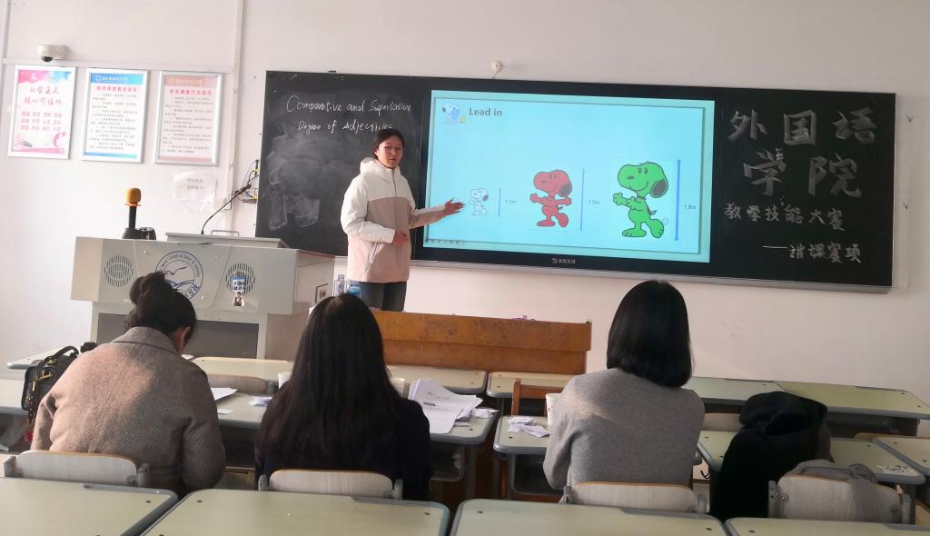 比赛伊始,主持人简要介绍了评分规则与流程。随后,16位参赛选手依次登场,在简短的自我介绍后,依托精心制作的课件与板书,展开15分钟的模拟授课。选手们神态自然、语言生动、教学思路清晰、课堂互动丰富,充分展现了扎实的专业素养与教学潜力。