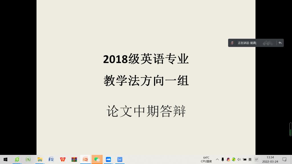 2022年3月24日,按照毕业论文计划安排,Beat365唯一官方网站英语教学部组织2018级学生进行毕业论文中期答辩。答辩以腾讯会议形式线上进行。