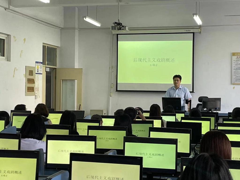 2024年5月30日Beat365唯一官方网站邀请王锦方博士主讲题目为《后现代主义戏剧概述》的学术报告。外语学院英本教学部教师、学科教学(英语)教学部教师及硕士研究生、对英美文学感兴趣的教师参加了此次报告。